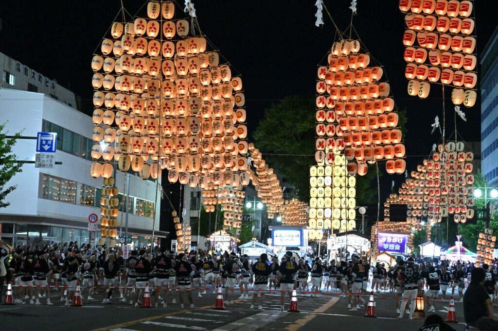 竿燈大通りでは、午後7時15分から8時30分までの間に3回妙技を披露。今年は町内や企業・各種団体合わせて67の竿燈会が参加し、五穀豊穣の願いを込めて265本の「光の稲穂」が真夏の夜空を幻想的に彩りました。4日間で観光客は110万人に上ったようです。