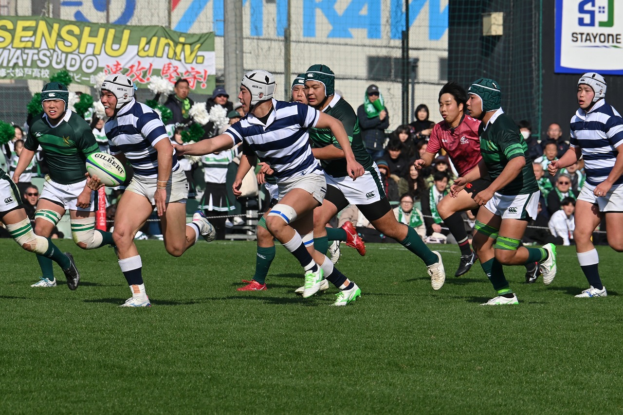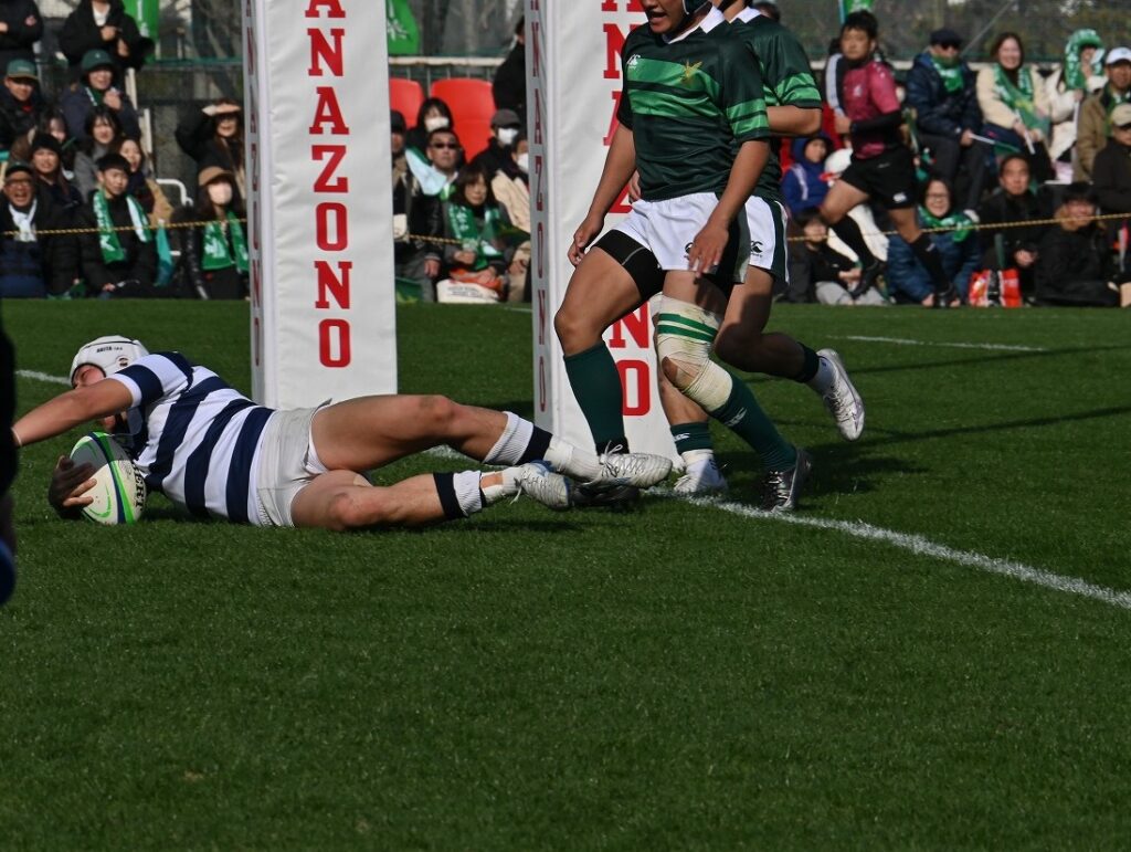 試合は22対11で勝利しましたが、前半は苦しい展開でした。先方がペナルティーゴールを2本外し、後半流れが変わり2トライを奪い勝利することができました。