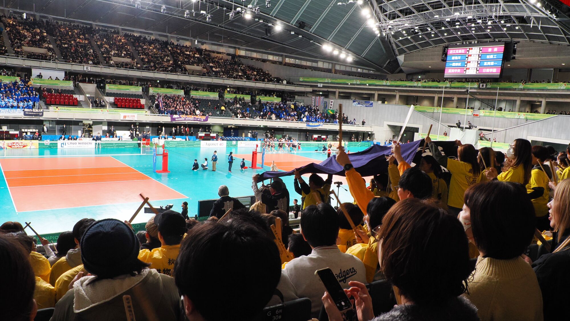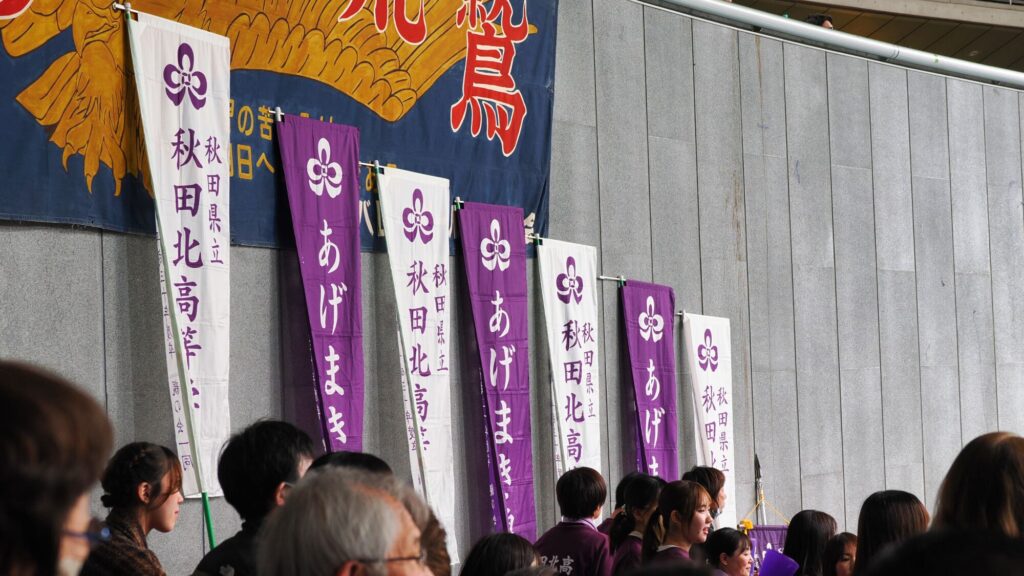 秋田ふるさと応援団は、秋田県代表の男子・雄物川高校と女子・秋田北高校の試合を応援しました。 2026年1月6日、松の内の期間中、関東地方は典型的な真冬の寒さと快晴に見舞われました。会場である千駄ヶ谷・東京体育館のチケット売り場には100人以上の行列ができ、私たちも40分ほど並んで2,000円を支払い入場しました。