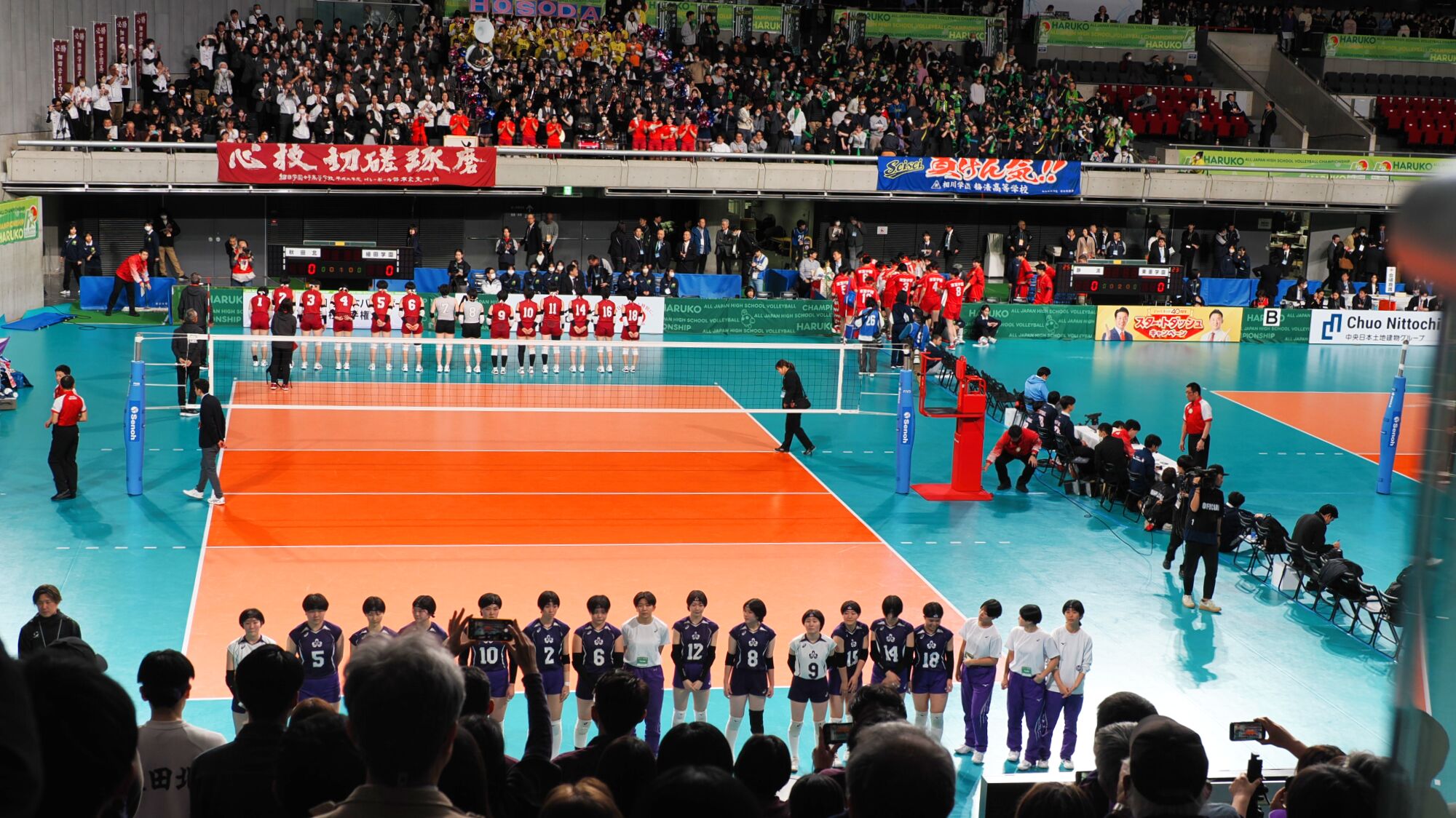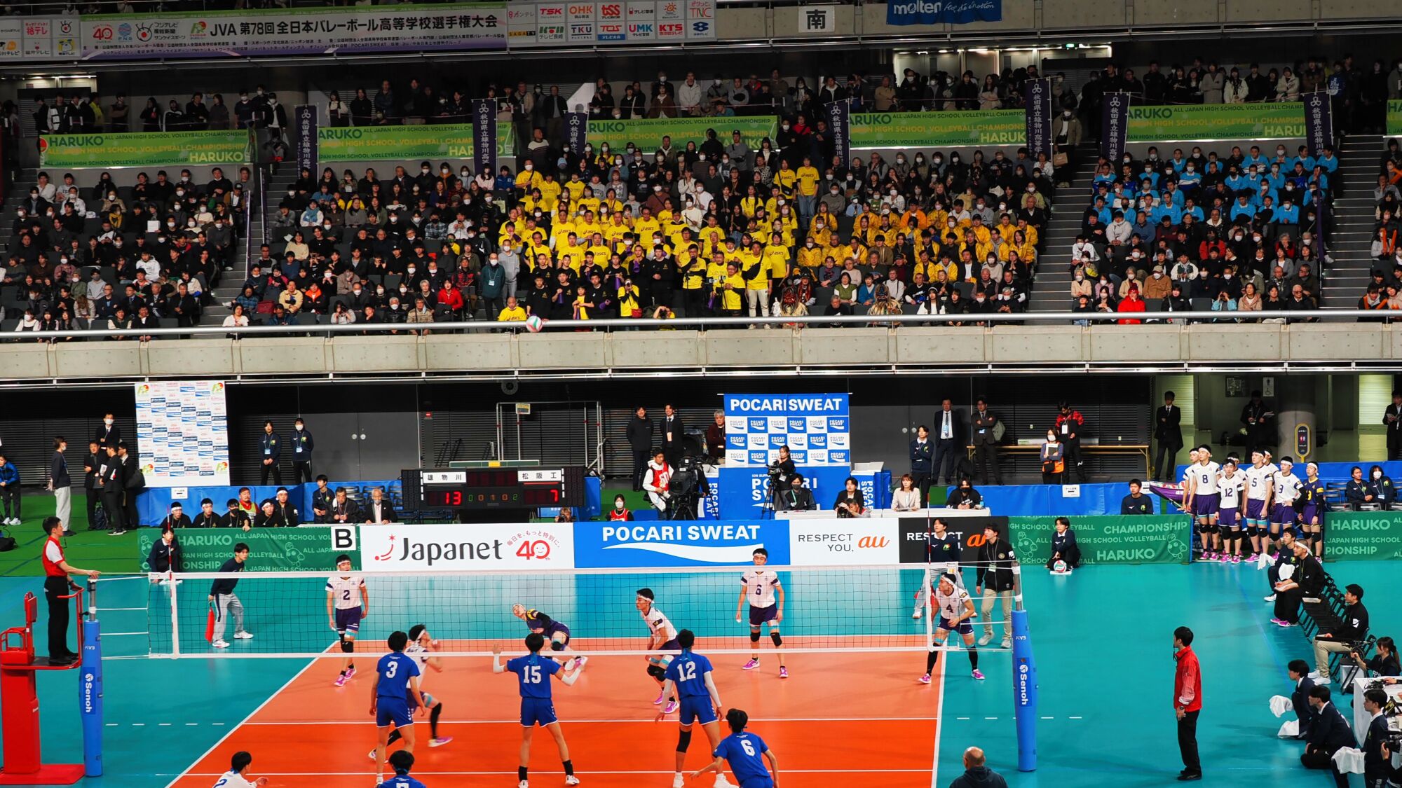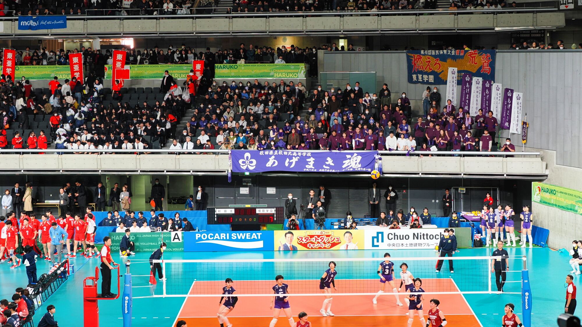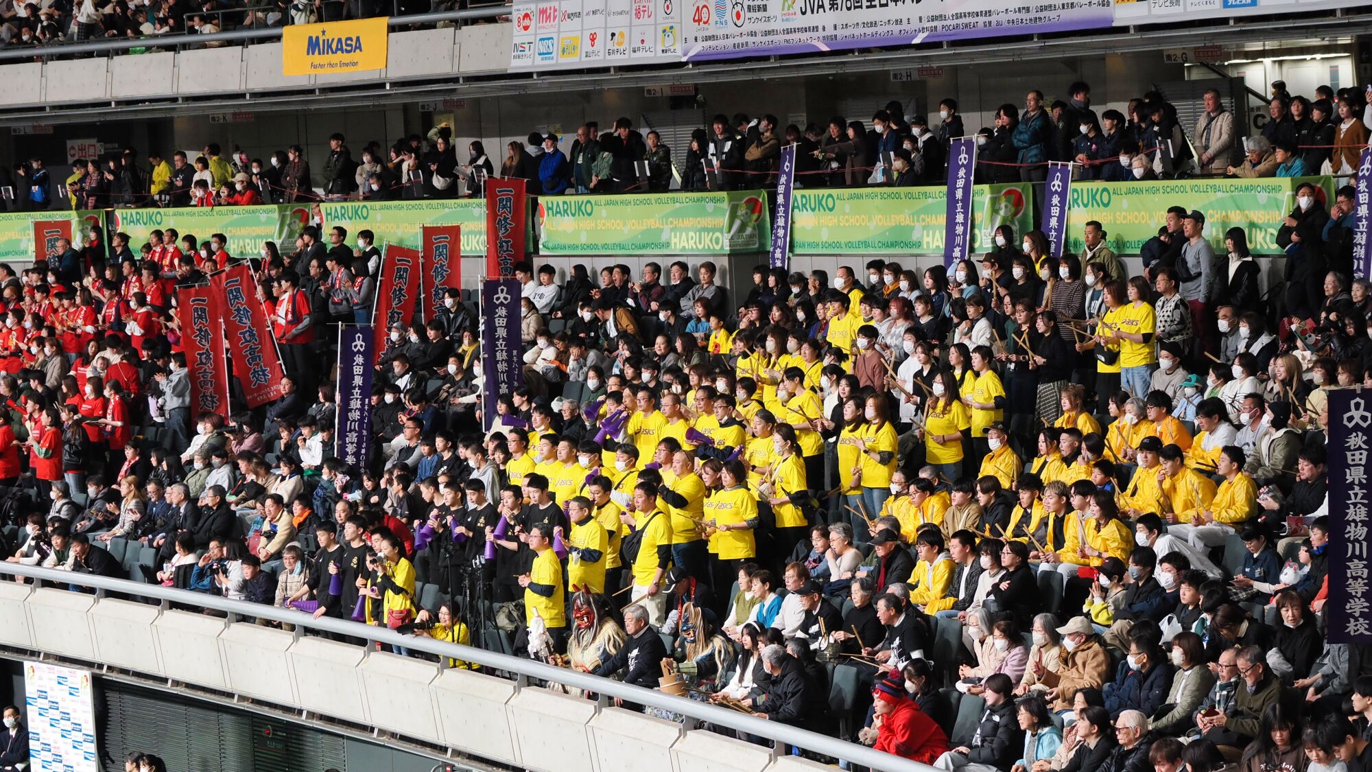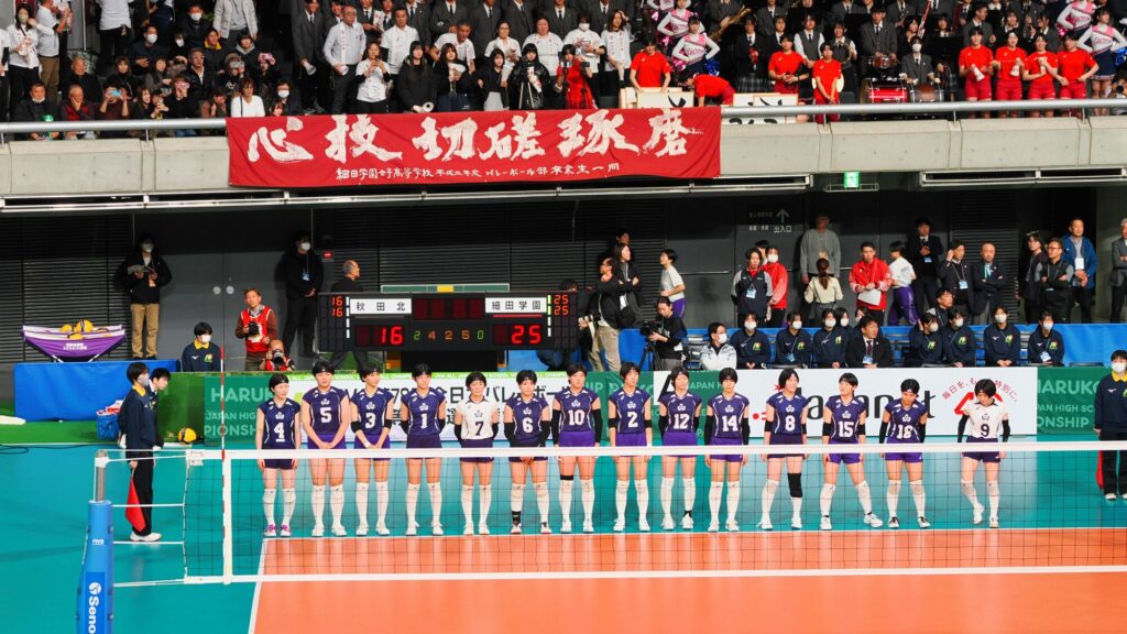男子の雄物川高校は松阪工(三重県)と、女子の秋田北高校は細田学園(埼玉県)と対戦しました。 同日、同じ東京体育館での試合ということもあり、秋田ふるさと応援団からも10数名が駆けつけました。秋田からの応援団や関東近隣の高校OB・OG、選手の親戚など、多くの応援者が秋田チームを支えました。