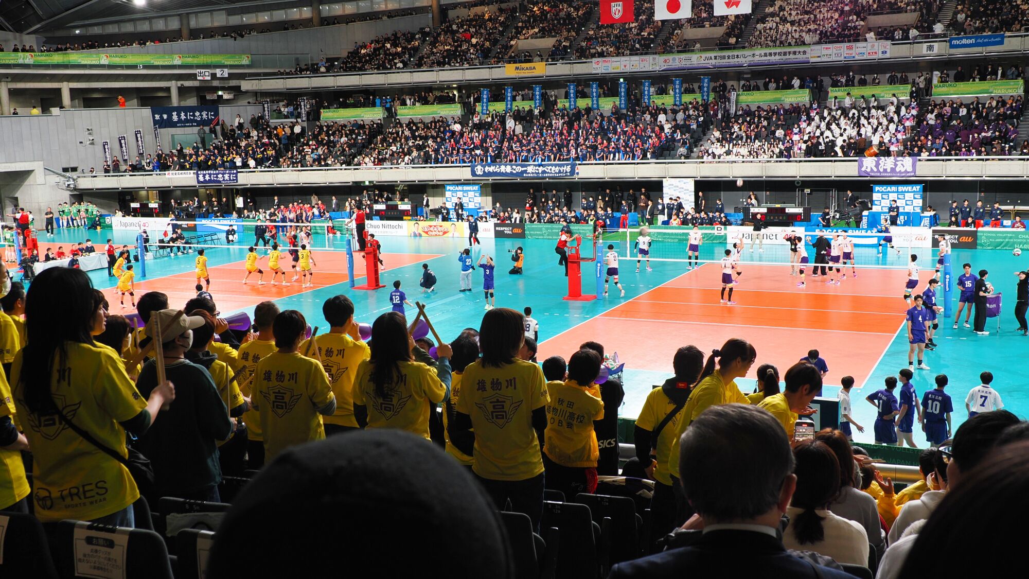 春高バレー雄物川高4強入り 応援 2026.01.08 第78回全日本バレーボール高校選手権(春高バレー)第4日は8日、東京体育館で行われ、秋田県男子代表の雄物川は3回戦では全国高校総体準優勝の市尼崎(兵庫)にストレート勝ちした。 続く準々決勝で東洋(東京)に2―1で競り勝ち、準決勝に進んだ。雄物川の4強入りは4年ぶり5度目。 10日の準決勝で初の決勝進出を懸けて東山(京都)と対戦する。 雄物川 vs 市立尼崎(兵庫) 準々決勝雄物川 vs 東洋(東京)