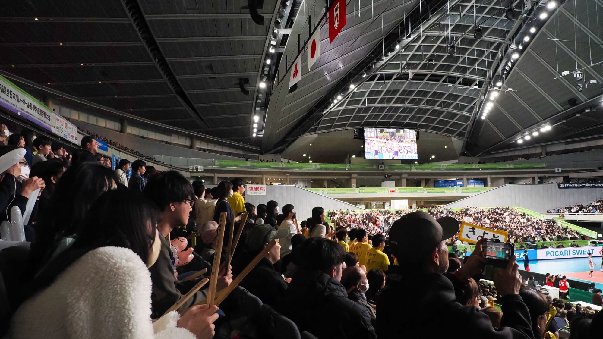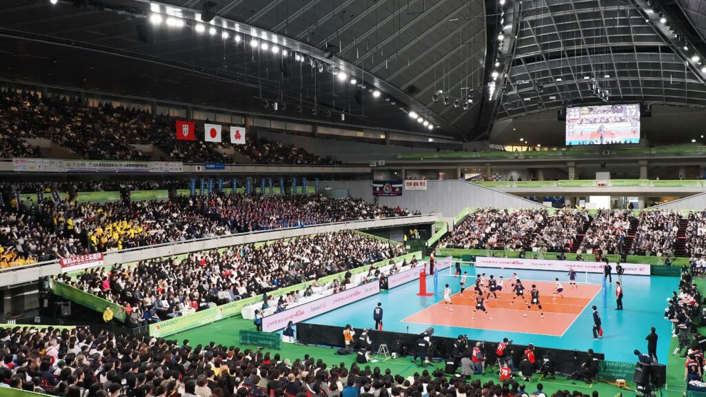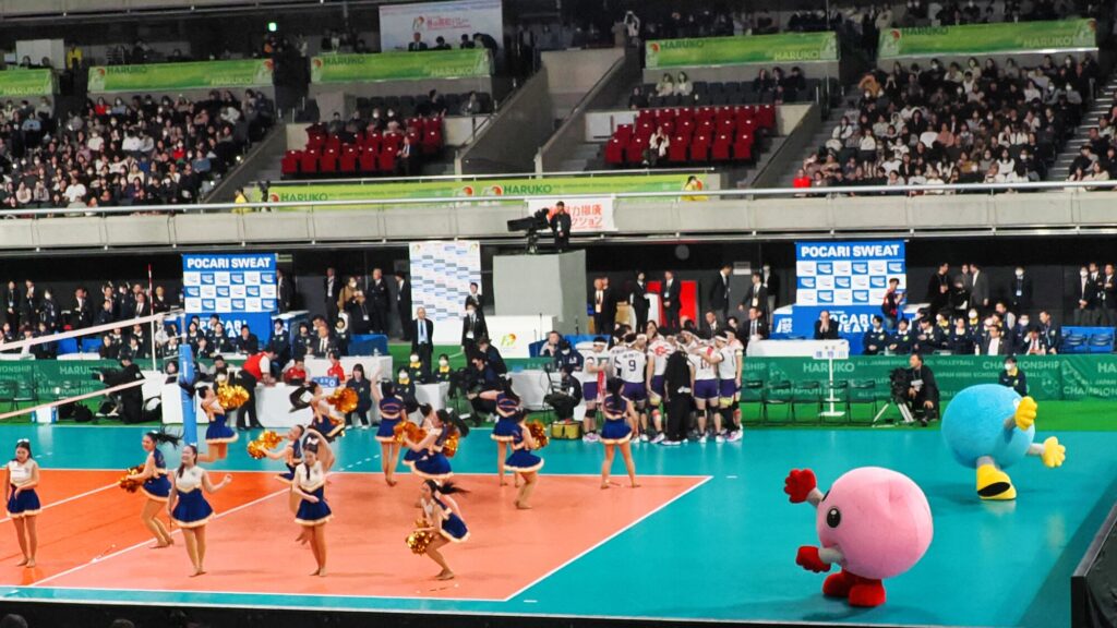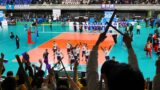 試合開始前には選手全員の名前が紹介され、試合開始前、セットの合間に応援パフォーマンスが披露されるなど、特別な雰囲気であった。