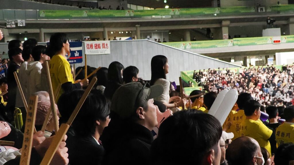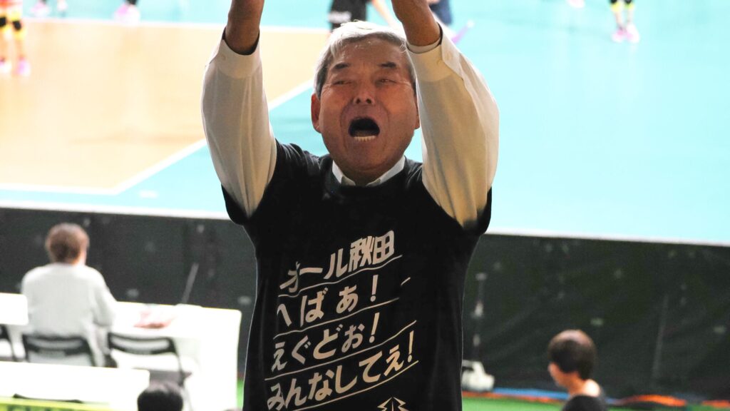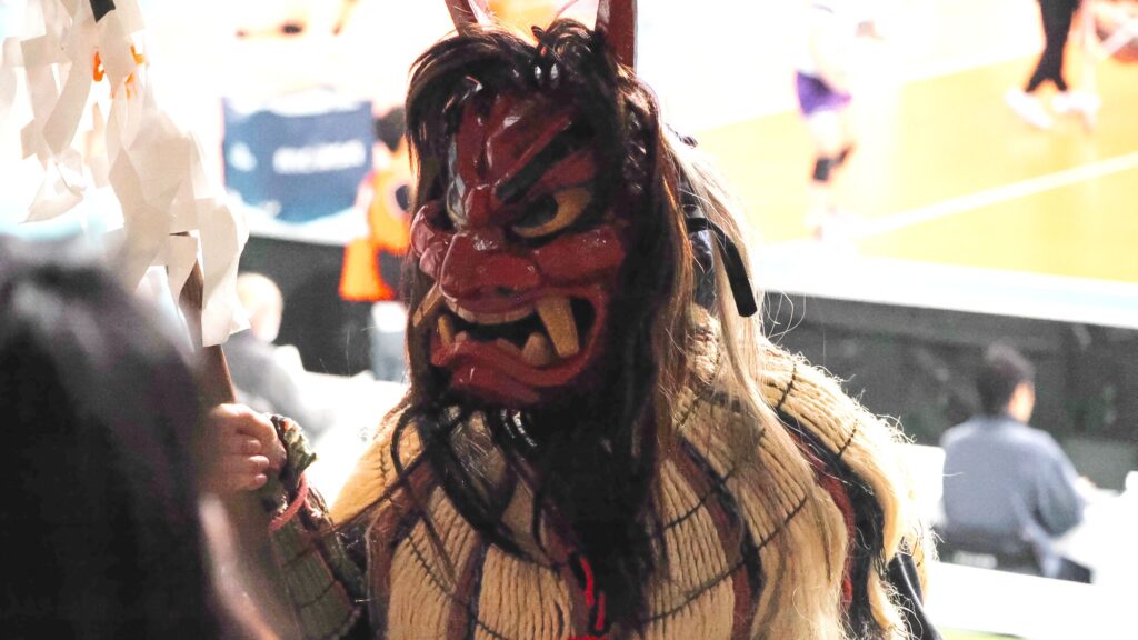 秋田ふるさと応援団もなまはげとともに応援席で応援した。