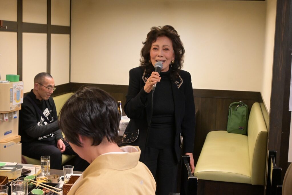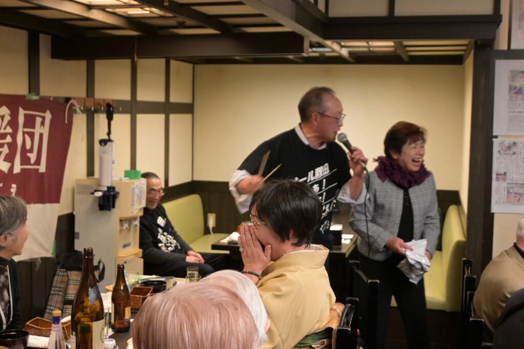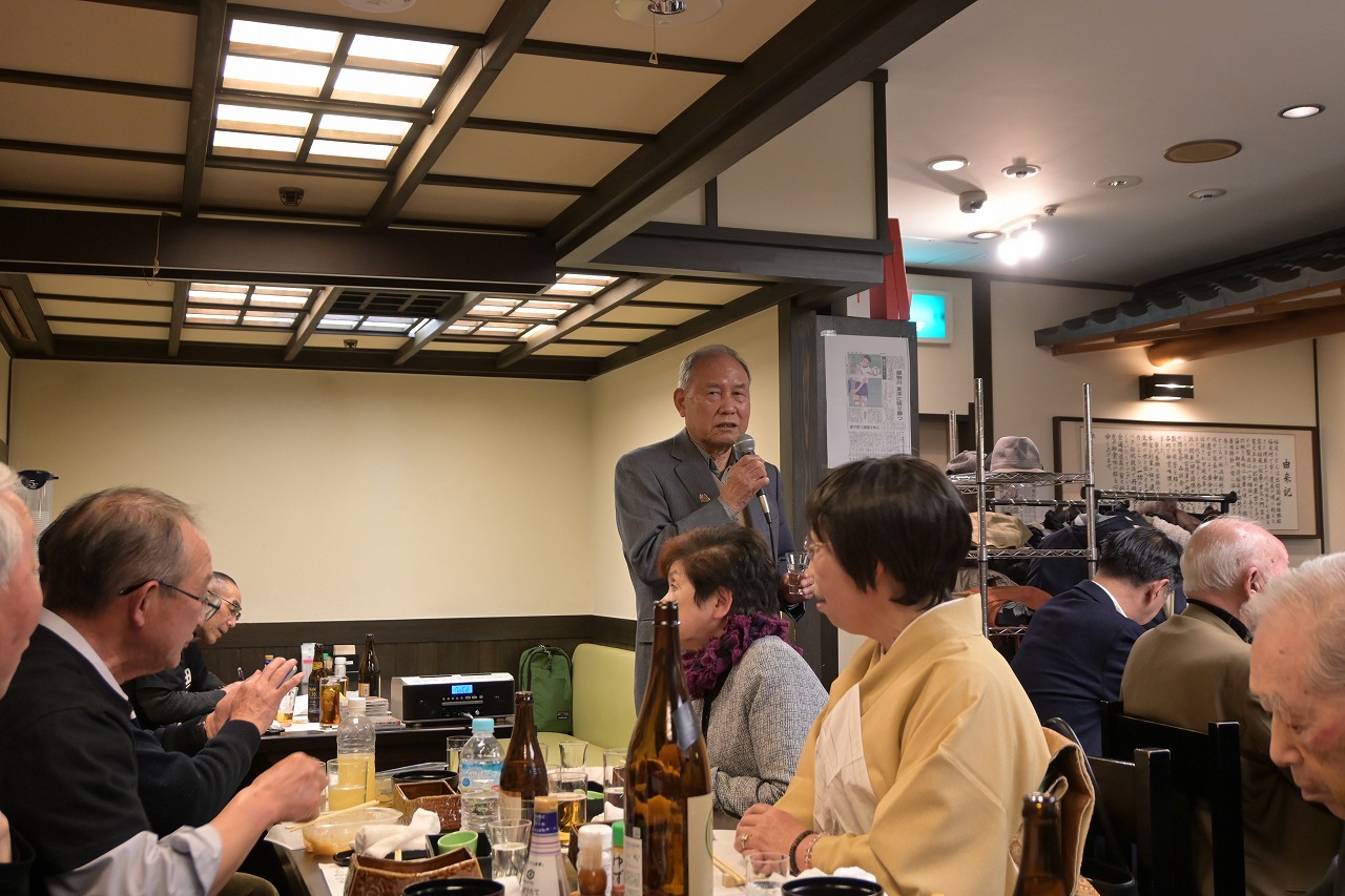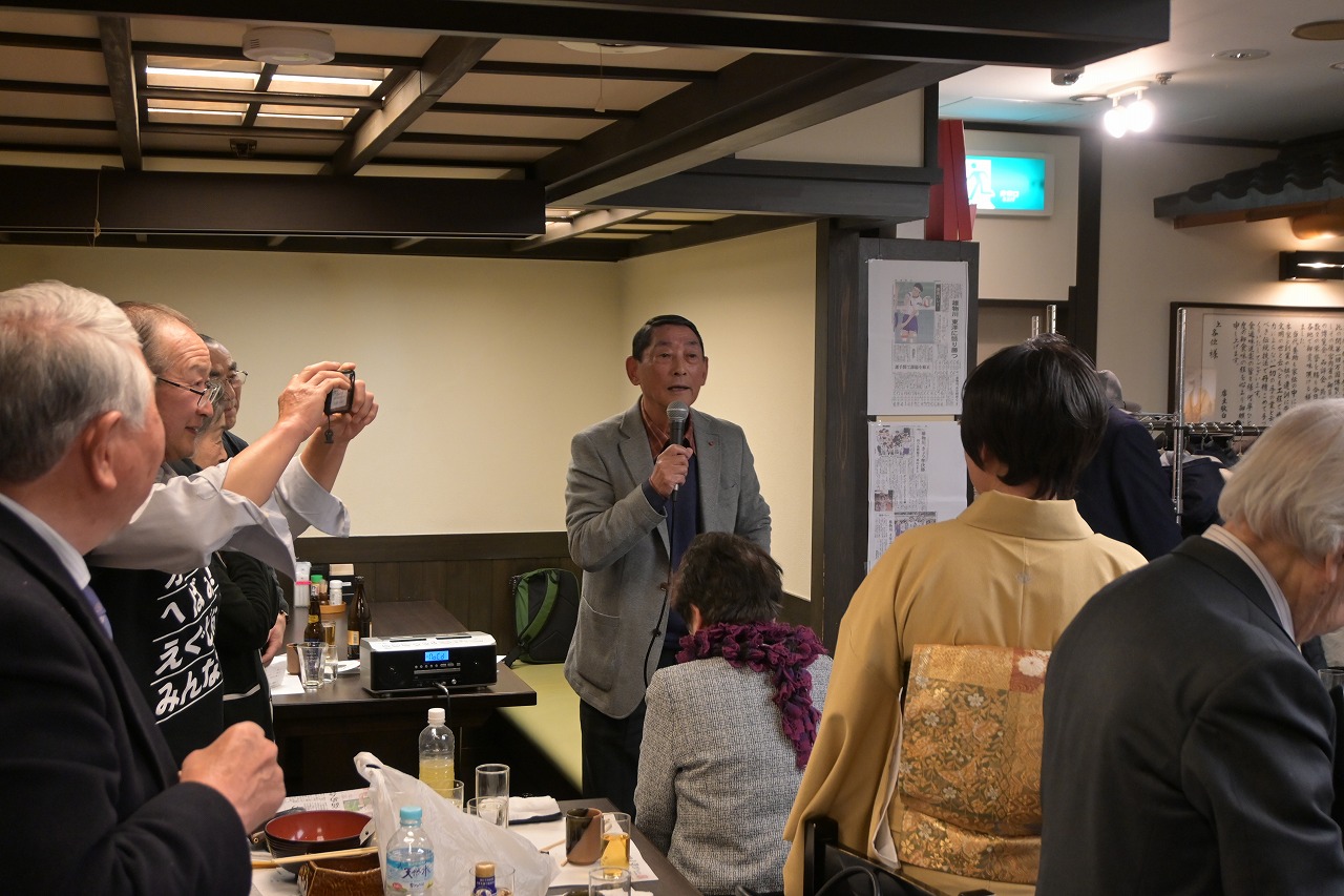2月7日(土)12時より15時30分まで、「佐藤養助 日比谷店」において、秋田ふるさと応援団新年会が29名の参加を得て開催されました。 開会にあたり、故・内館牧子氏を偲び参加者一同で黙祷を捧げました。 保坂悟氏(中央高校)の発声により乾杯を行った後、民謡歌手の山形俊男氏、池上朝子氏、矢作トモ子氏、渚まゆみ氏よりそれぞれの持ち歌をご披露いただきました。さらに、山口敦子氏よりご提供いただいた米焼酎を秋田の銘酒とともに味わい、歓談は大いに盛り上がりました。 宴もたけなわとなった頃、大渕応援団長(能代工)より声高らかにエールが送られました。結びに、長岡功氏(能代西)より「9月5日の『スポーツ・文化・秋田応援の集い』成功に向けて頑張ろう」との力強いご挨拶があり、閉会いたしました。