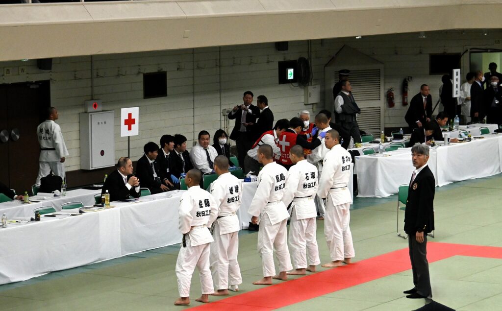 試合は、秋田工(秋田)対 鶴来(石川)に0対2で敗れました。知事ご子息が大将で出ましたが、一本取られ残念でした。