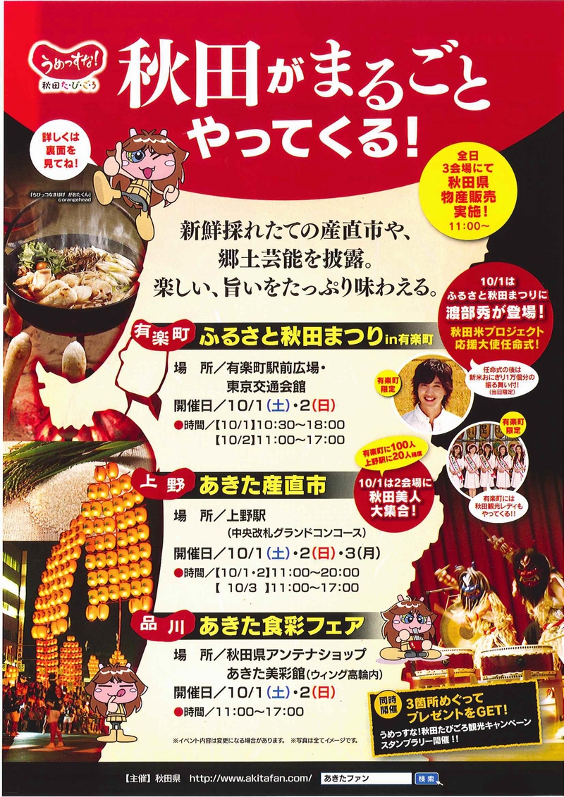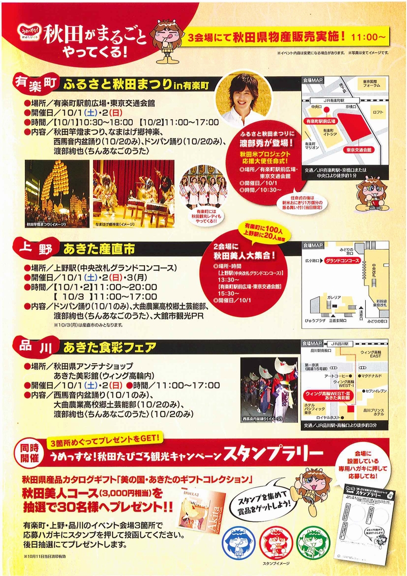 10/01(土) , 02 (日) 有楽町駅前広場 「ふるさと秋田まつり」