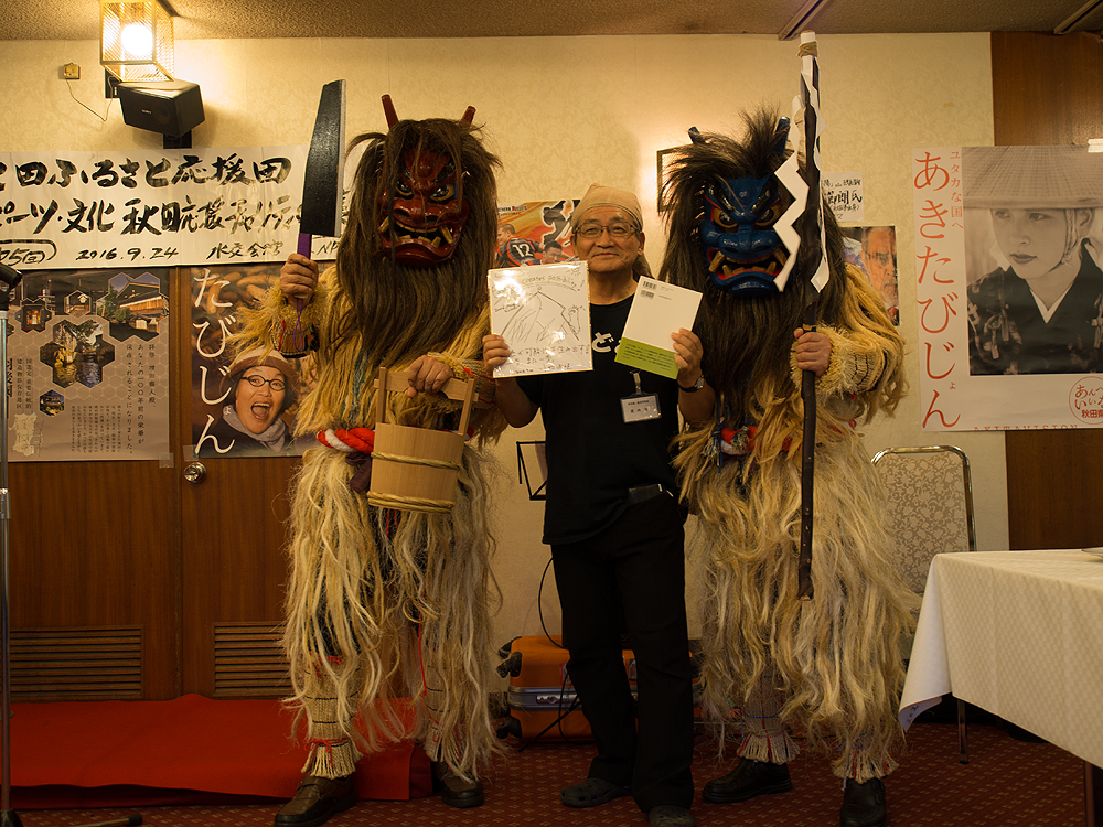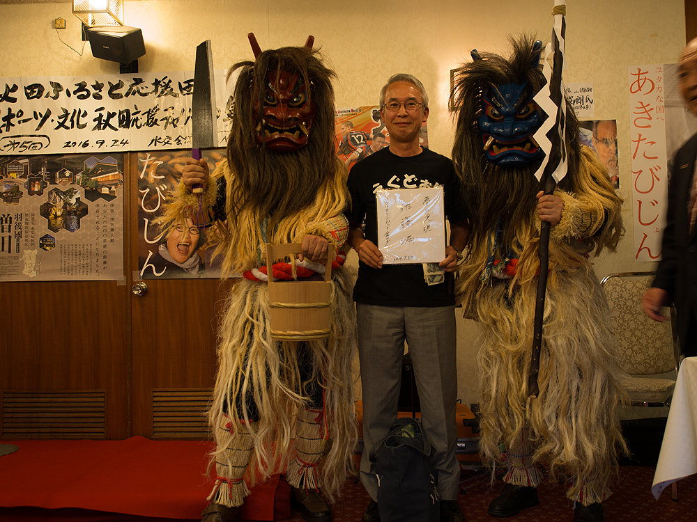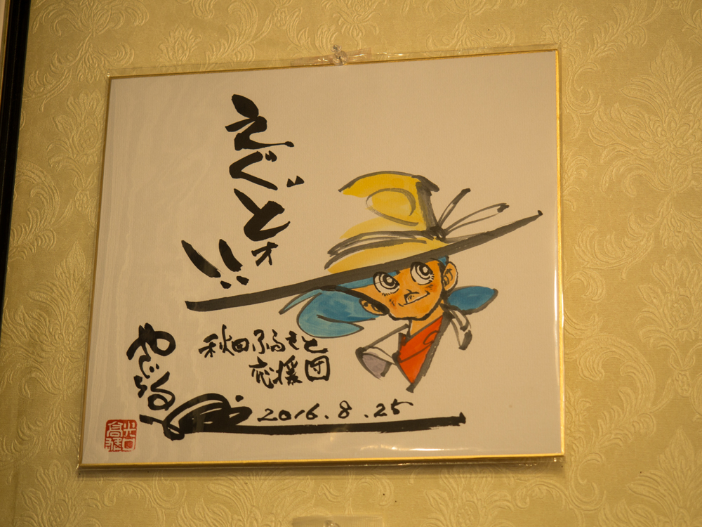 チャリティオークションでは、横手市増田町出身漫画家矢口高雄氏の「釣りキチ三平」カラー色紙や、秋田ノーザンブレッツのTシャツなど毎回寄贈して頂いている秋田ゆかりの著名人からの品が次々と落札されました。