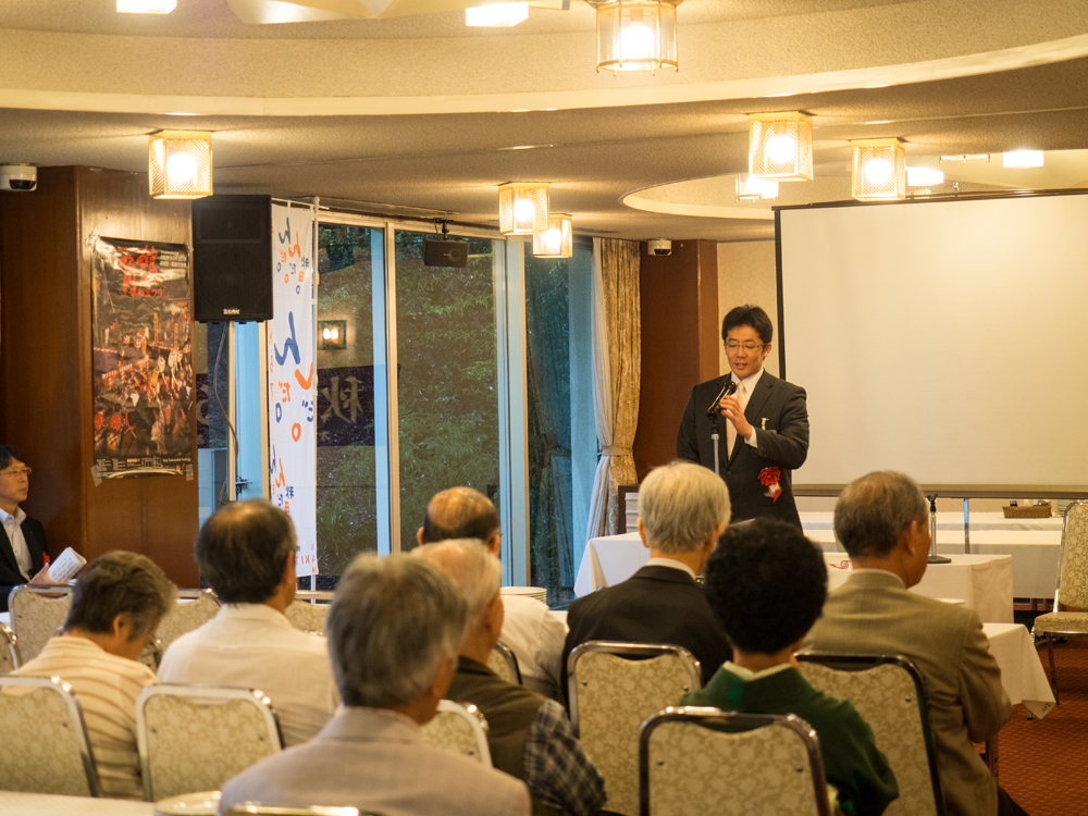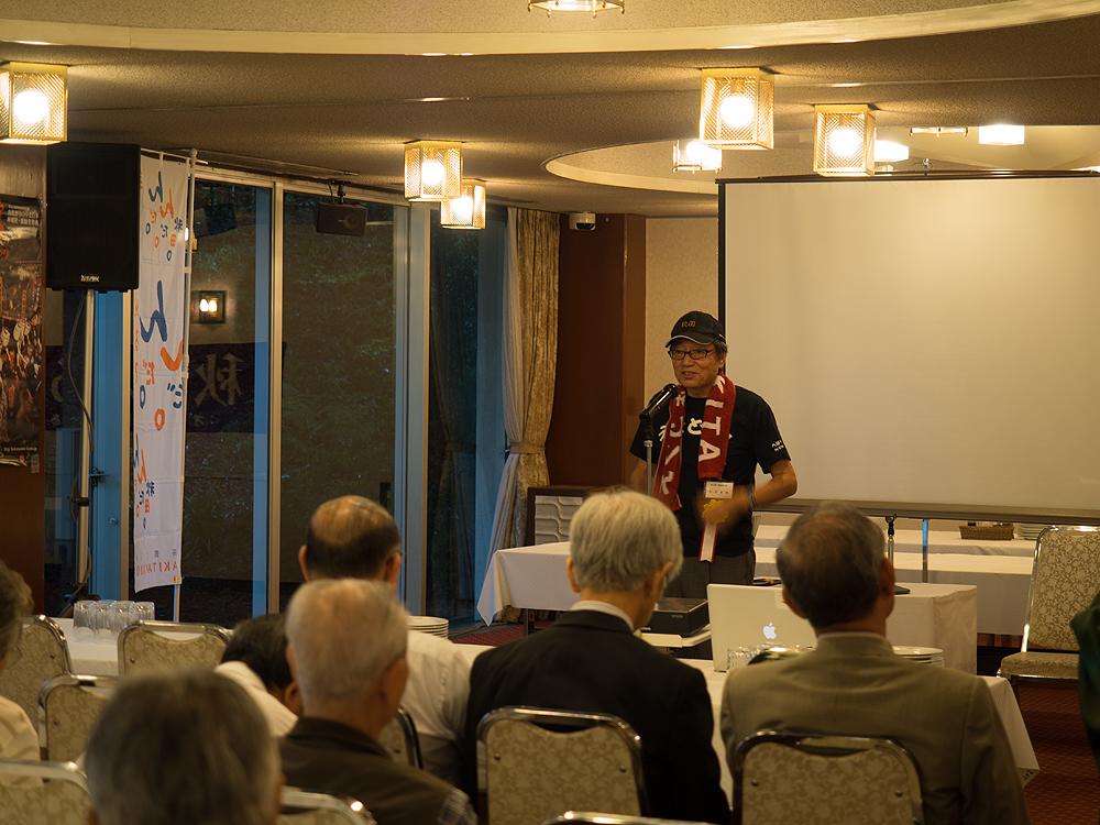 来賓の牧野一彦秋田県東京事務所長から、今年秋田では果物が豊作だった、人口減の割りには農業の生産性が良くなっている、林業が機械化導入などにより伸びている、など秋田の現状に関する説明がありました。