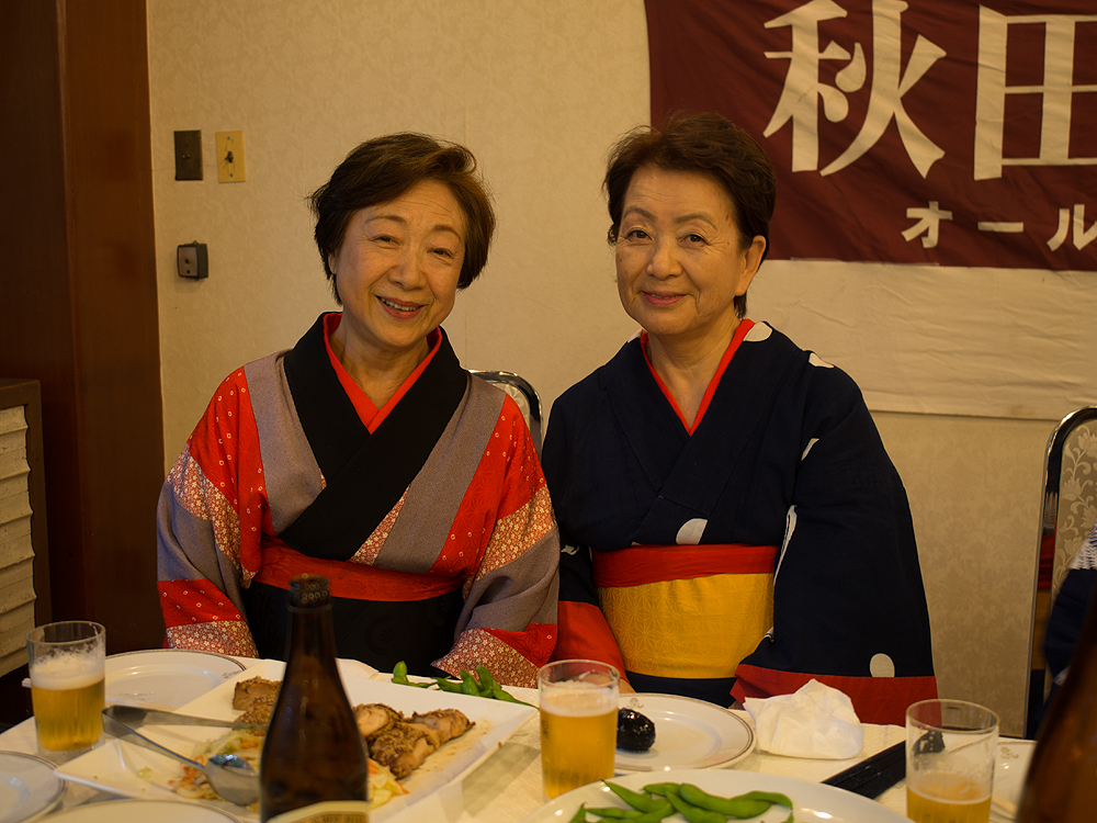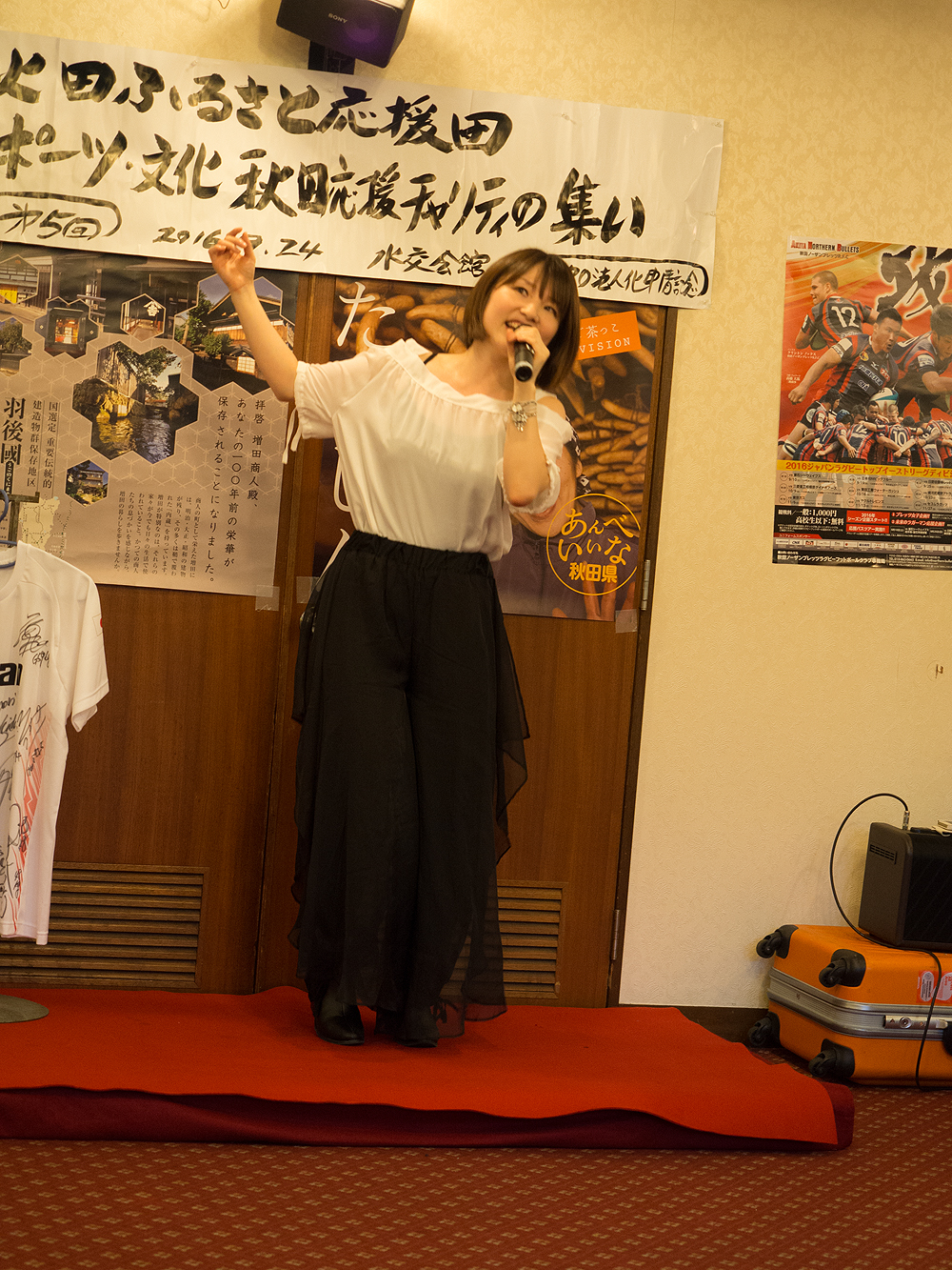 交流・懇親では「秋田の伝統と文化を学ぶ会」のみなさんの西馬音内盆踊り、秋田ゆかりの芸能人や高校同窓会員の歌や民謡が披露されました。