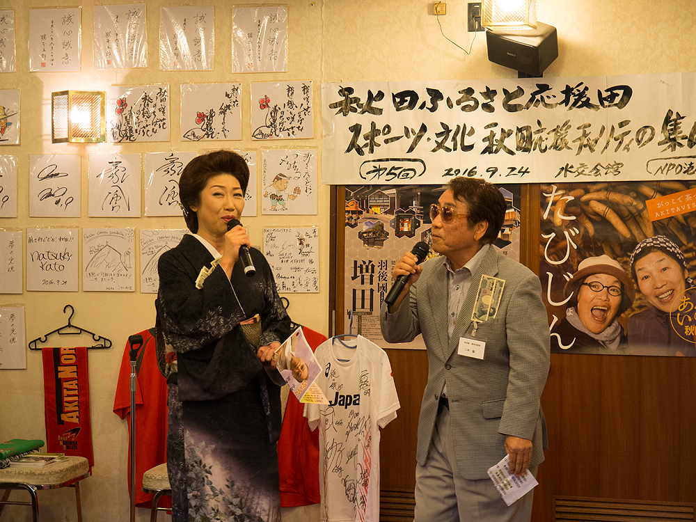 首都圏在住の秋田県出身者で構成する秋田ふるさと応援団主催による「第5回スポーツ・文化秋田応援チャリティの集い」が、9月24日(土)東京都渋谷区の水交会館で開催されました。来賓7名を含めて総勢105名が参加しました。