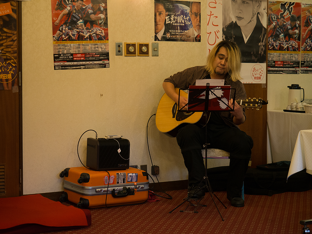「秋田県民歌」斉唱 リード佐藤真理子さん、フルート伴奏 嵯峨良平氏