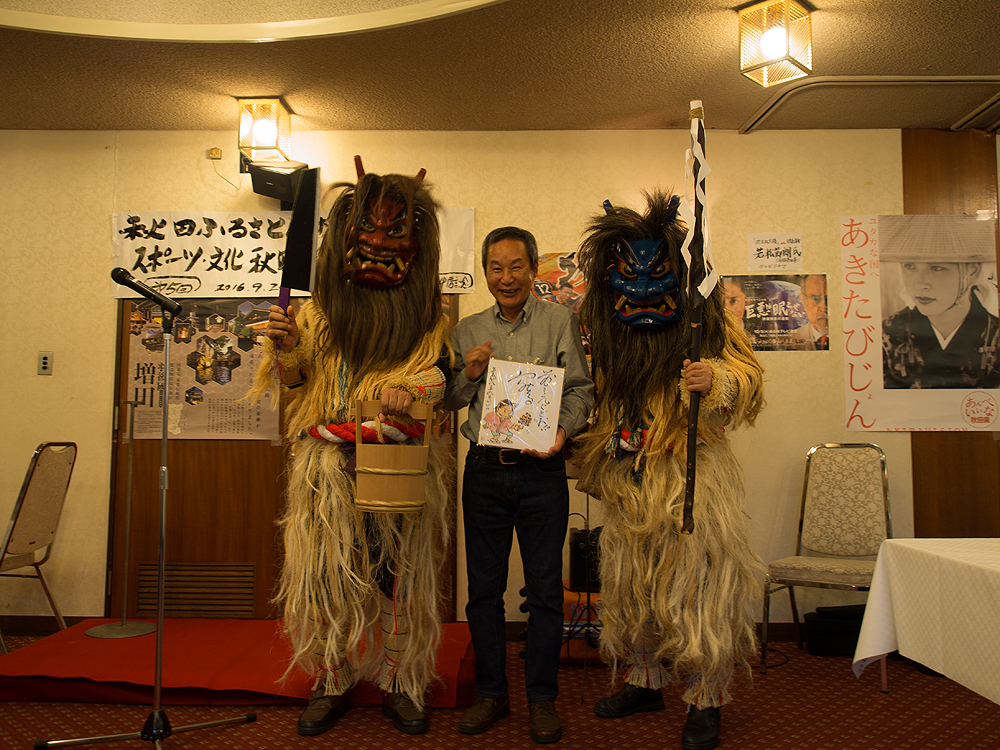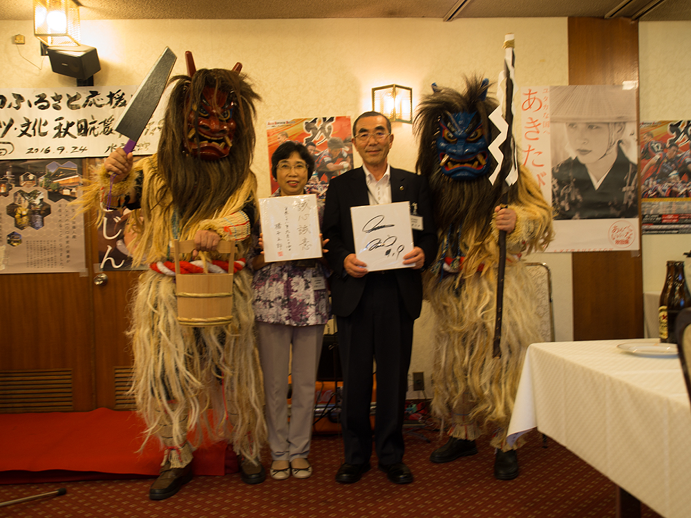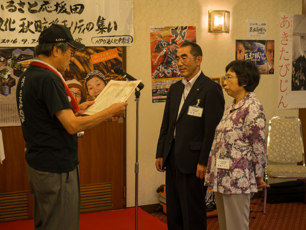三平会長から、「秋田ふるさと応援団は、9月18日(日)に築地本願寺会議室に於いて開催された6期定期総会報告後に、特定非営利活動(NPO)法人設立承認申請が入会者より承認され、29年1月末日認可予定で進めております。秋田ふるさとの支援活動に今後共皆様方のご協力ご支援よろしくお願いします。」との挨拶がありました。