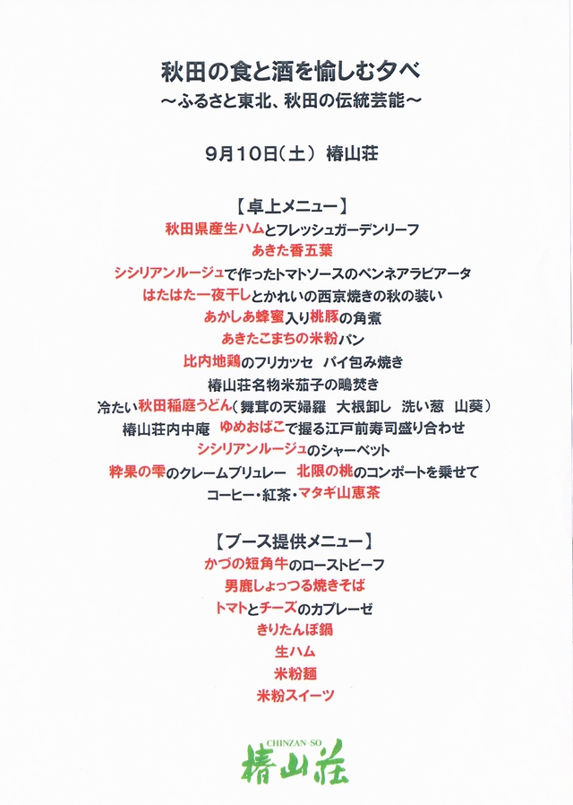 9月10日(土)6時から椿山荘において、秋田県主催の「秋田の食と酒を愉し む夕べ」に参加してきました。240名(県外者1/3)の出席者と地 ビール(田沢湖)、秋田を代表する地酒(大吟醸・純米吟醸)、秋田の名産品で飲食しながら、わらび座が東北各6県の伝統芸能文化踊りを愉しみ皆様満 腹で満足で帰宅しました。 なお、金井克子(スタイル抜群)さんと一緒に写真撮りました。 (寄稿 三平会長)