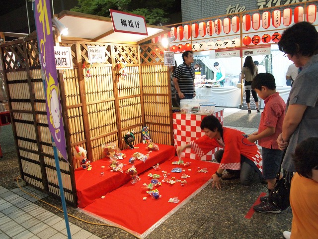 広場にはやぐらが建てられ、金魚すくいならぬボールすくい(?)や輪投げや射的などのゲームも出ていました。