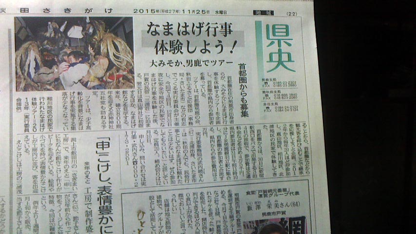 今朝、地元秋田魁新聞にも紹介されました。首都圏ではこれからです。 どうぞよろしくお願い致します。
