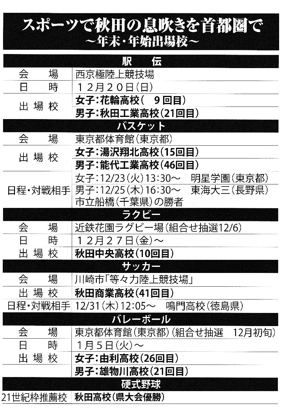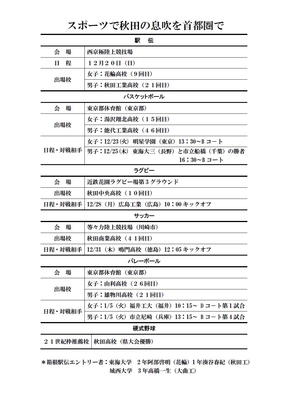 12月20日の高校駅伝をトップに郷土の選手達が躍動します。