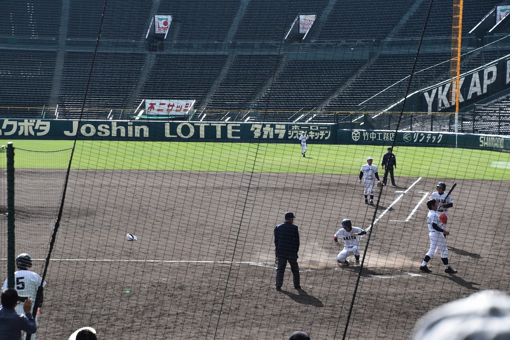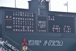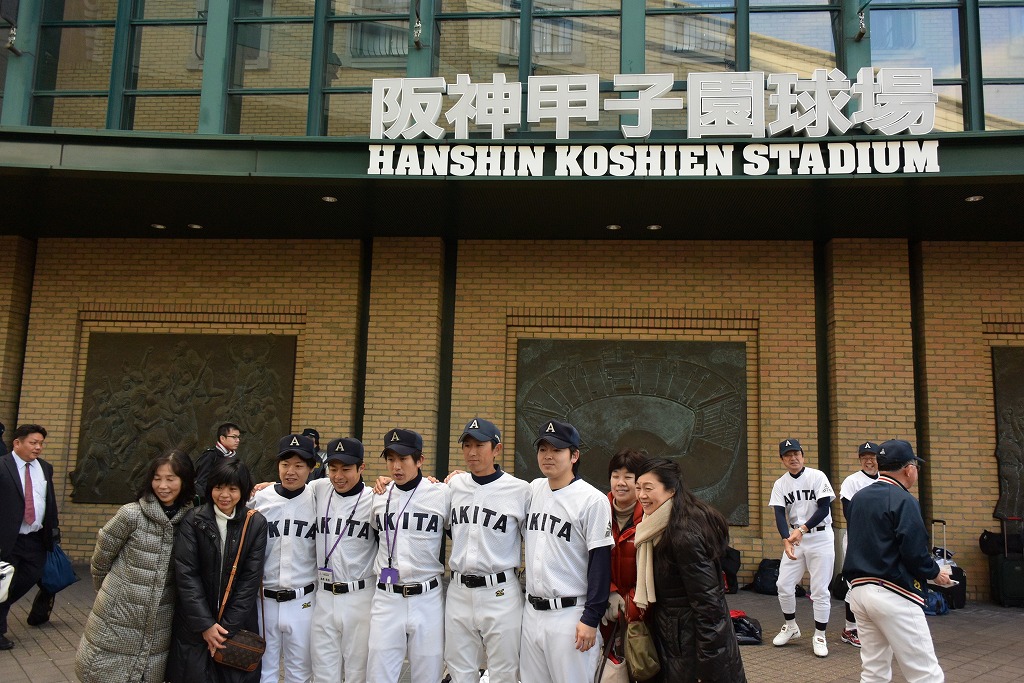 再現試合は10対3で秋田高校の勝利でした。球場内ベンチには両校の登録選手60名が次から次へと交代で入り、90分間夢の舞台で野球を楽しんでおりました。