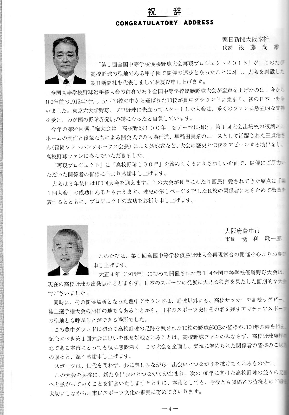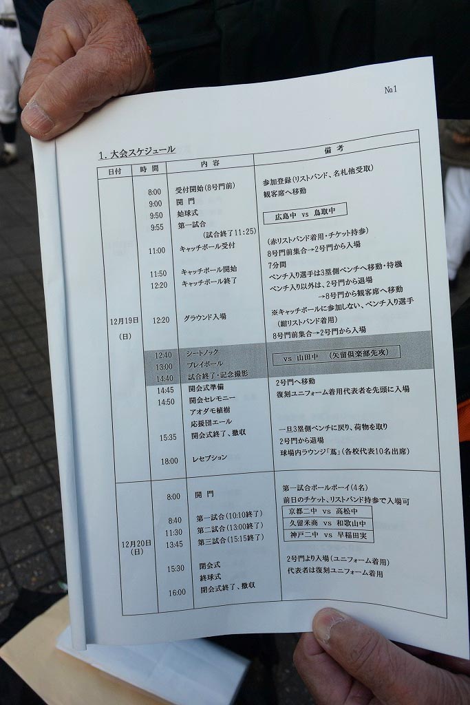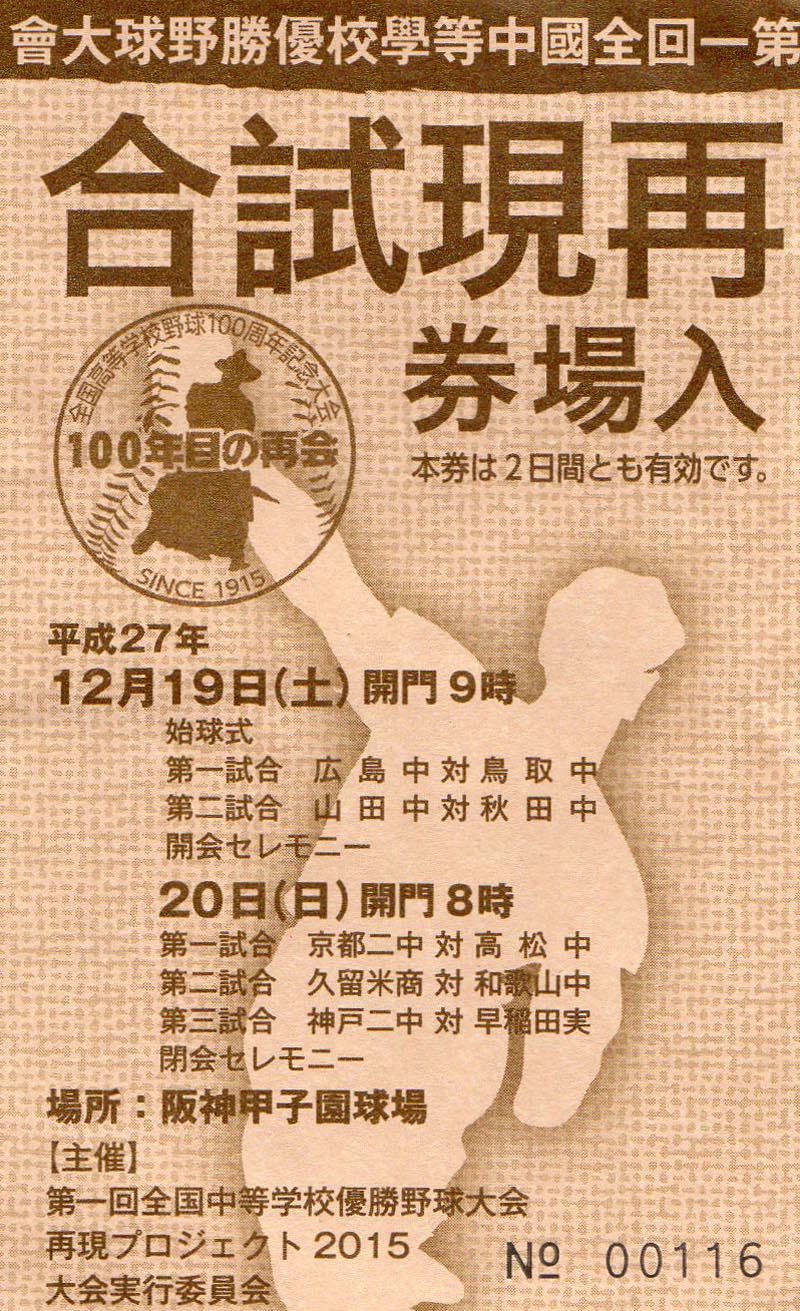 12月19日(土)甲子園球場で開催された「第一回全国中等学校優勝野球大会(1915・大正4年)再現試合」にレジェンド10校が参加しました。