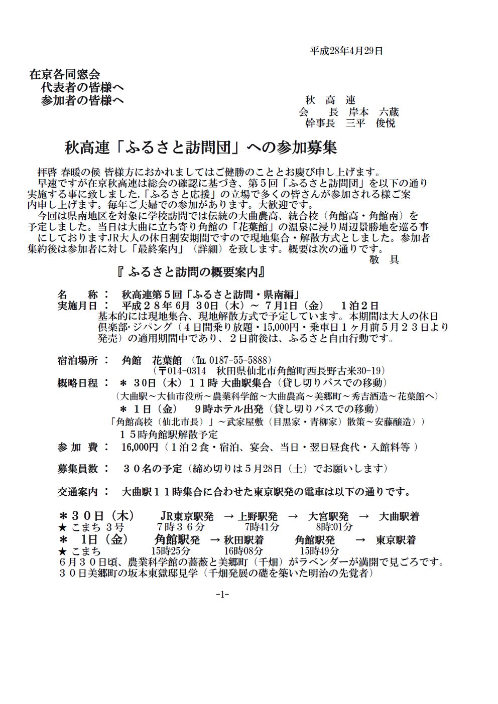 秋高連第5回「ふるさと訪問」報告
