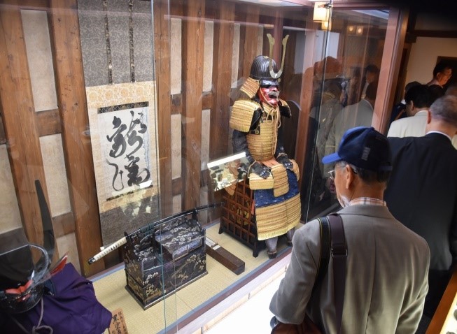 C秀吉酒造訪問、鈴木社長自ら、説明と酒屋唄を歌い歓迎していただき、石田三成が献上した甲冑などが展示されていました。各種の酒を試飲してほろ酔いとなりながら、酒などを買いました。