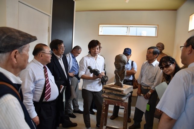 J彫刻家の佐藤励(れい37歳)さんは大曲工業機械科卒業、奈良芸術短期大学を卒業後帰郷して、実家の「角館きがた」祭りの人形作りや看板製作を手掛け、塑像製作で培った技術を生かし、地元に伝わる工芸技術を生かした製品開発に力を注いでおり、アトリエで説明していただきました。今後の活躍を期待しております。