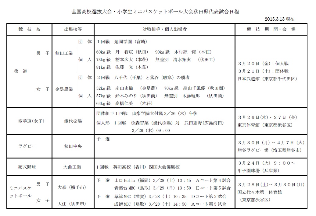 秋田ふるさと応援団の皆様におかれましては年末年始の大変お忙しい中、首都圏を中心に各地で開催された高校スポーツ大会の応援に
