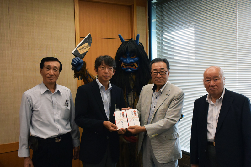 7月28日に秋田県東京事務所を訪れ、7月11日に開催した第4回「秋田ふるさと応援団 スポーツ・文化秋田応援チャリティの集い」の収益金から、秋田県高校体育連盟と県高校文化連盟にそれぞれ5万円ずつ寄付金として、秋田県東京事務所牧野一彦所長に手渡しました。
