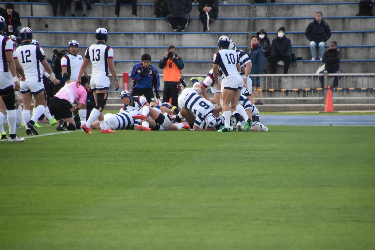 両校共それぞれの持ち味をいかんなく発揮した試合でした。秋工はチームプレに徹し、苦しい練習に耐え全員が団結してモールを押し続けて奪ったトライでした。
