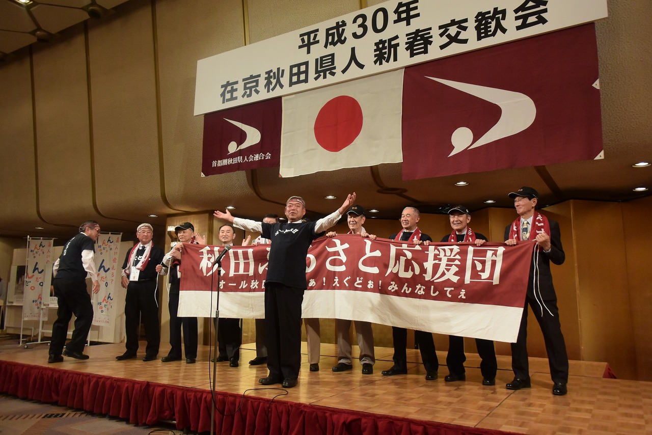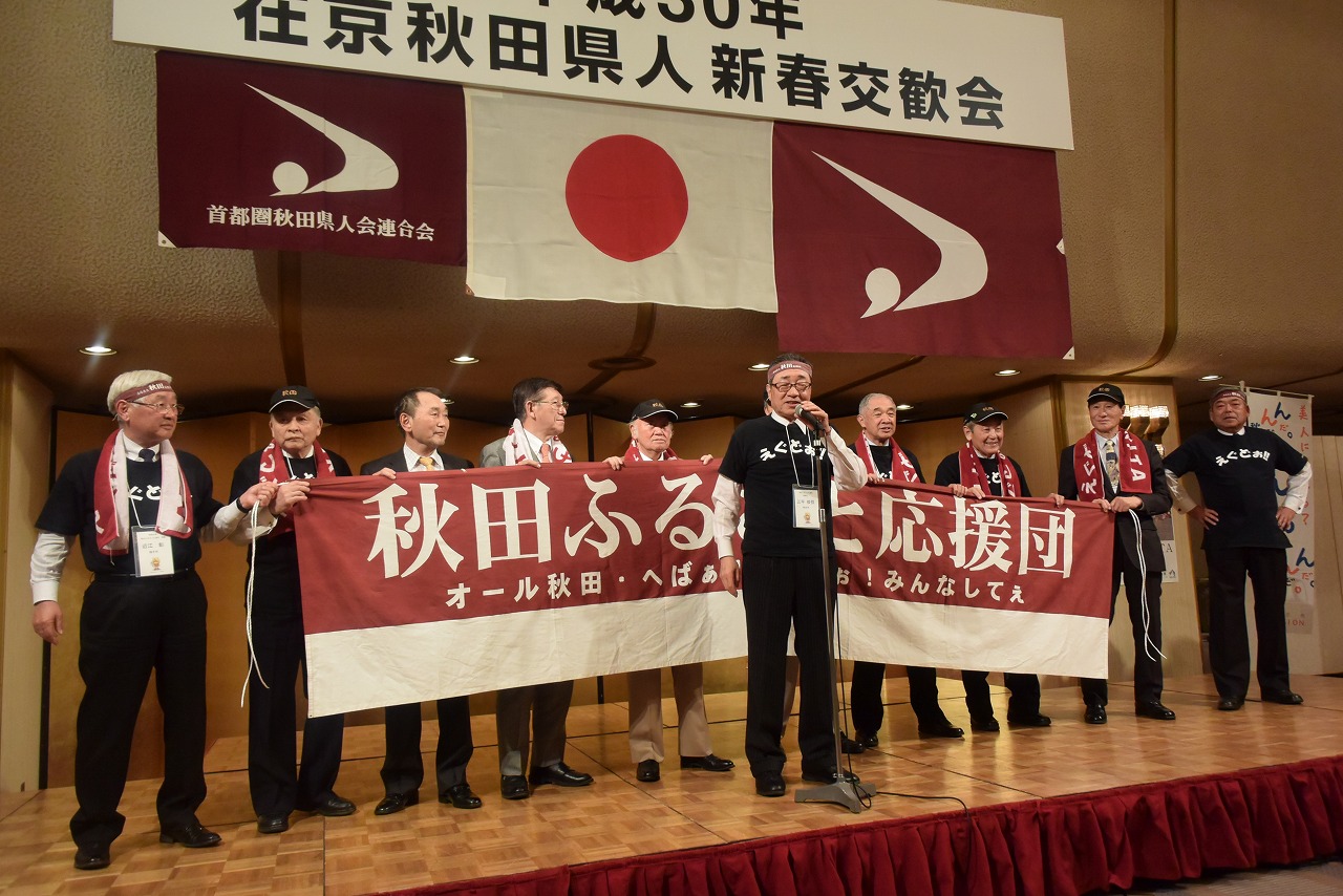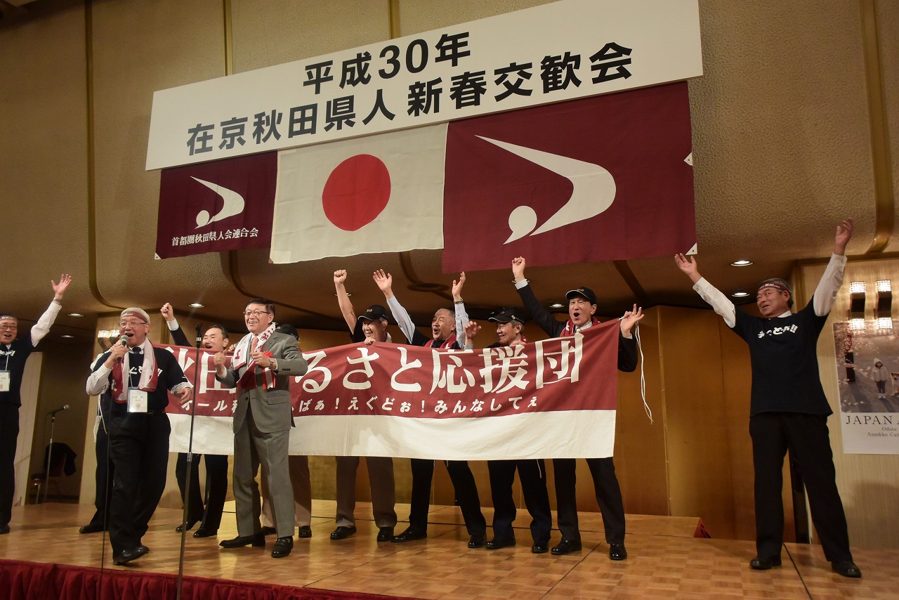 県東京事務所の依頼により、秋田ふるさと応援団が佐竹知事と一緒に秋田への応援エールを送りました。