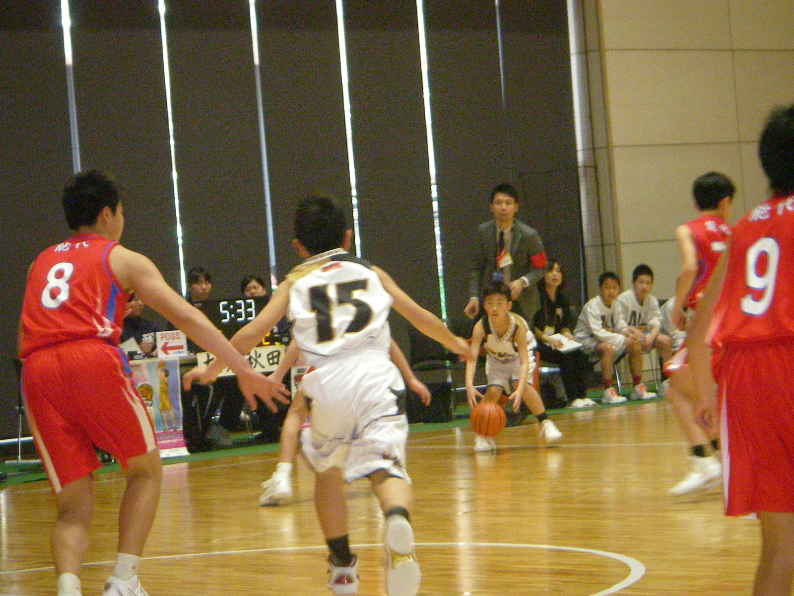 女子の森岳ミニバスチームは、シュートの正確さと守備の手堅さが、相手チームに対して若干上まわっていたように感じた。 男子の能代ブルーインズは、3試合とも大差で勝った。
