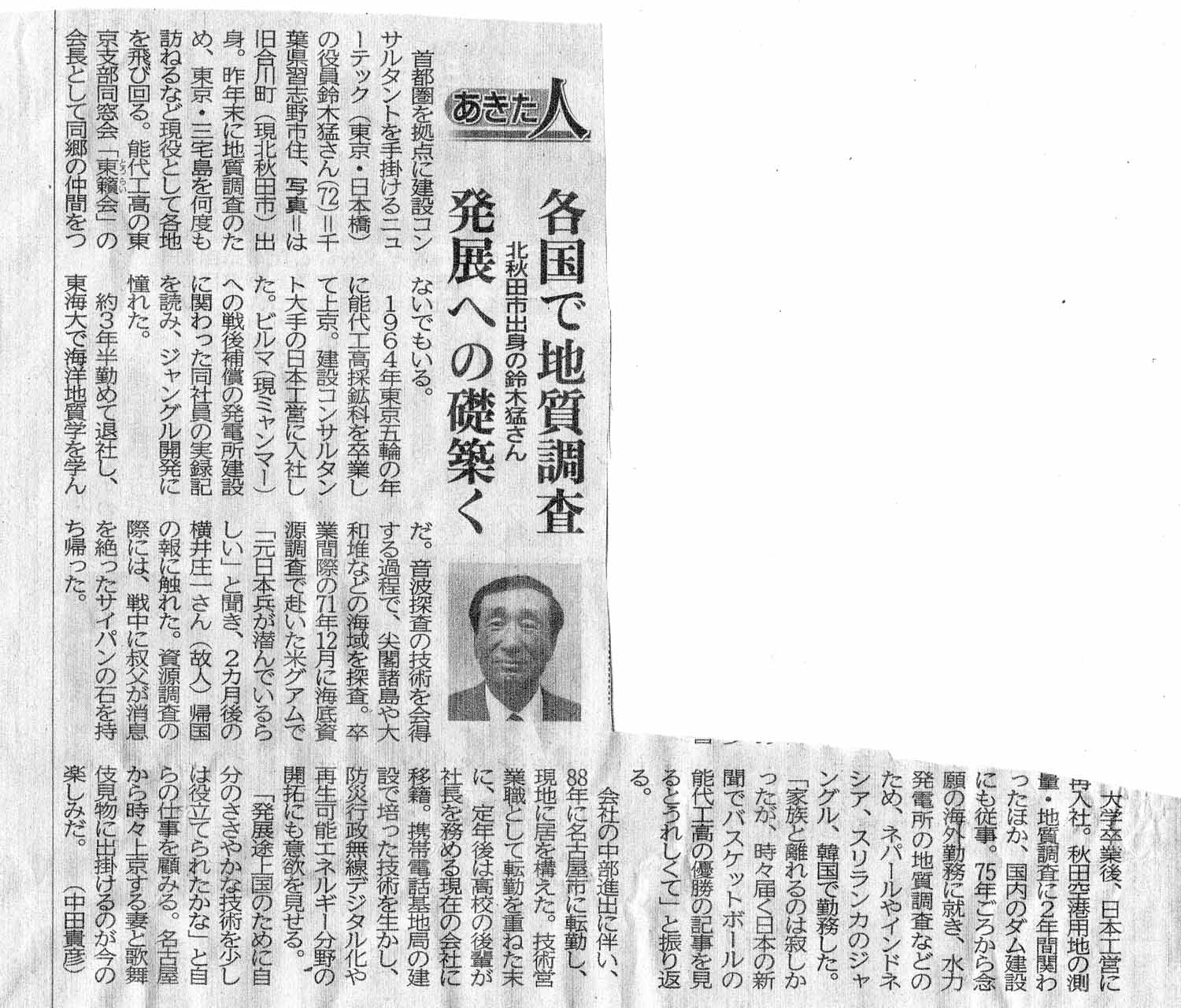 1月14日の秋田魁新報朝刊「あきた人」欄に秋田ふるさと応援団の副理事長 鈴木 猛さんの記事が載りましたので紹介します。