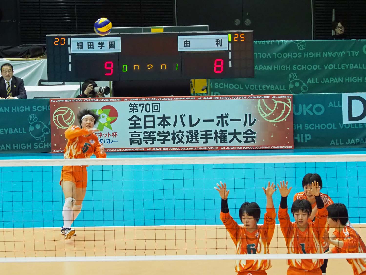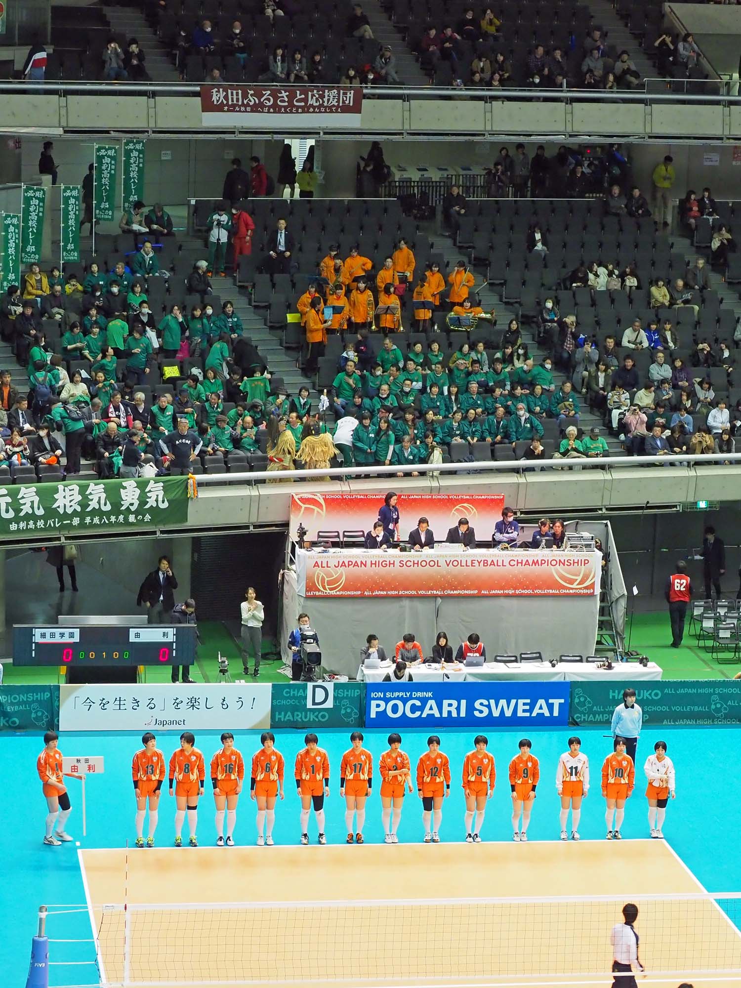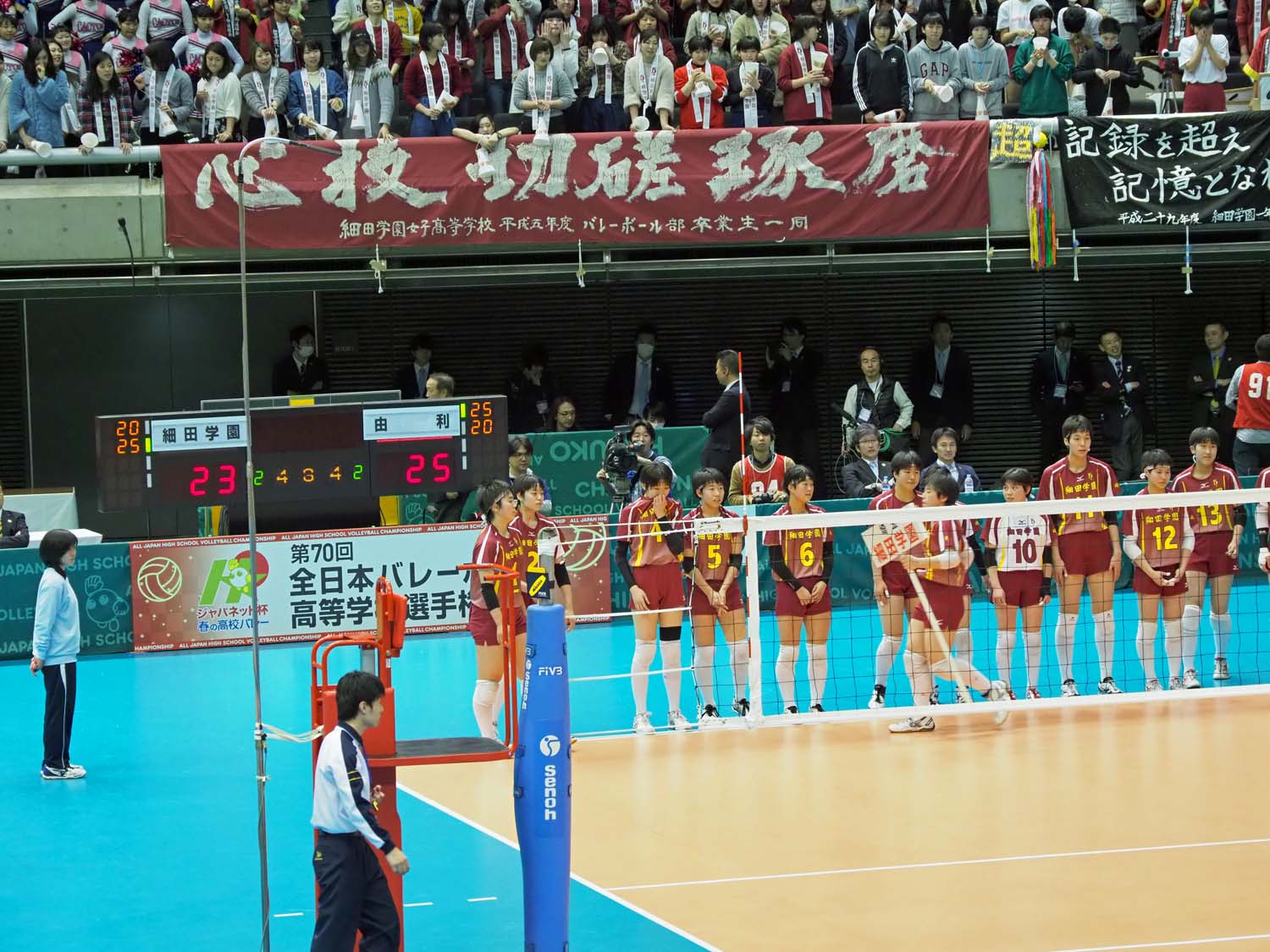 千駄ヶ谷の東京体育館で開催されているバレーボール第70回全日本高校選手権大会(春高バレー)に出場した秋田県代表女子の由利高校は、埼玉県代表の細田学園と対戦し、1―1で迎えた第3セットの接戦を制して初戦を突破した。