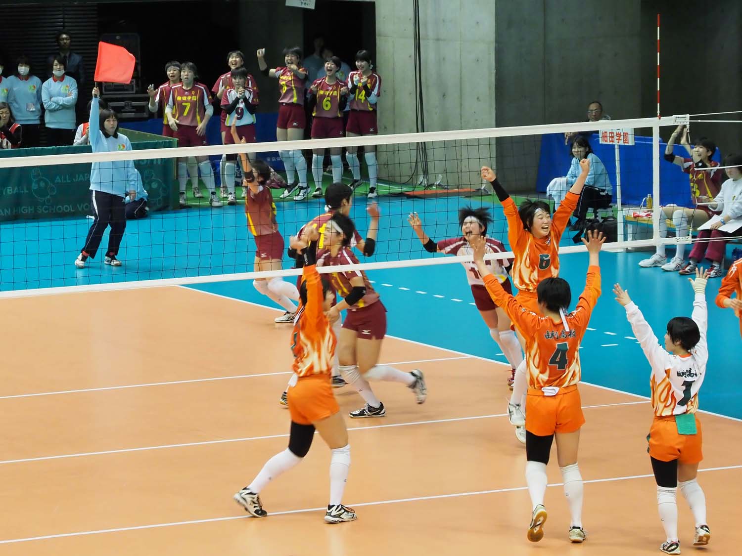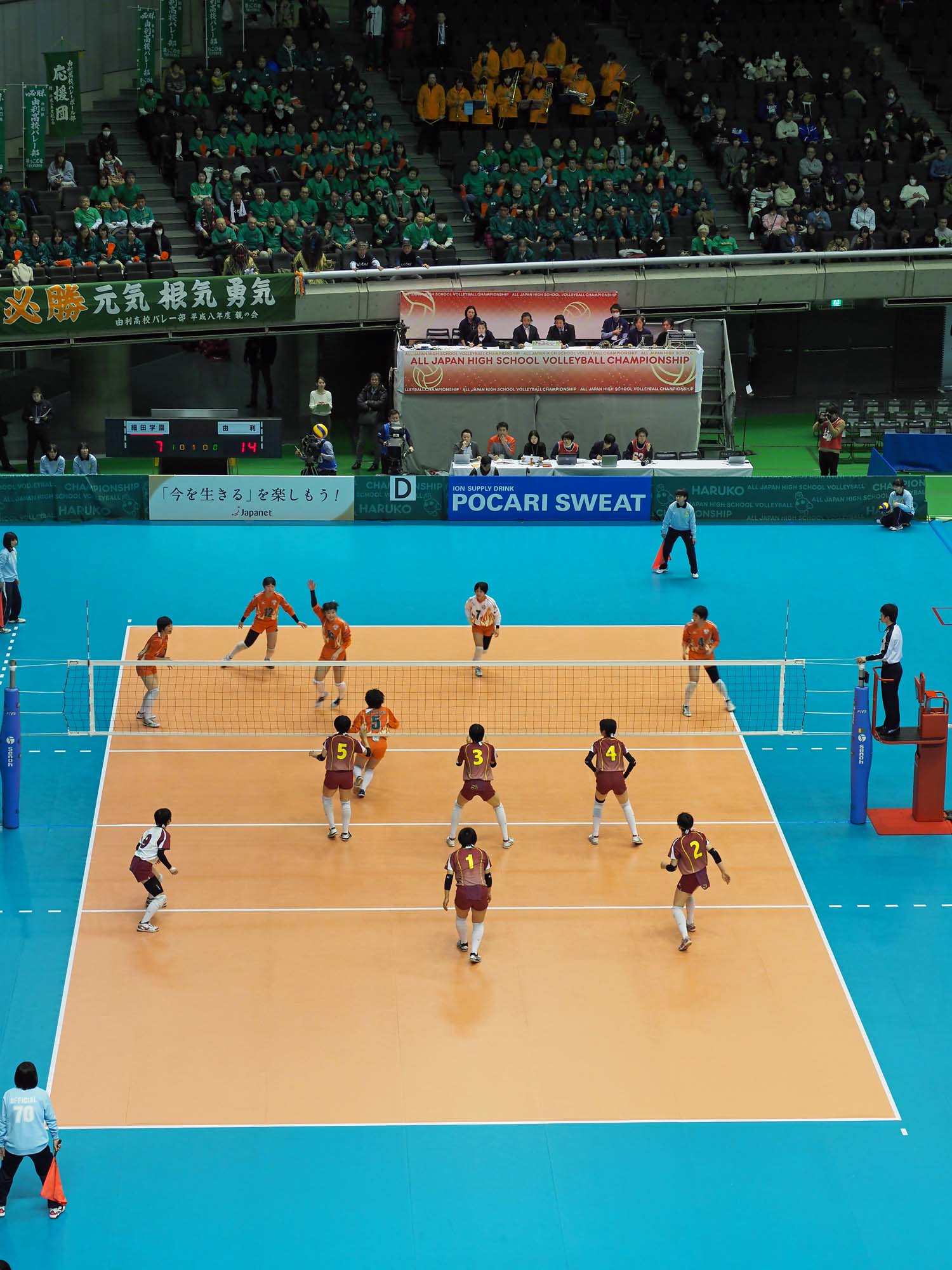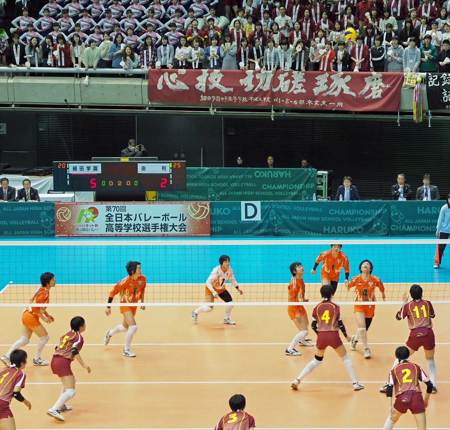 千駄ヶ谷の東京体育館で開催されているバレーボール第70回全日本高校選手権大会(春高バレー)に出場した秋田県代表女子の由利高校は、埼玉県代表の細田学園と対戦し、1―1で迎えた第3セットの接戦を制して初戦を突破した。
