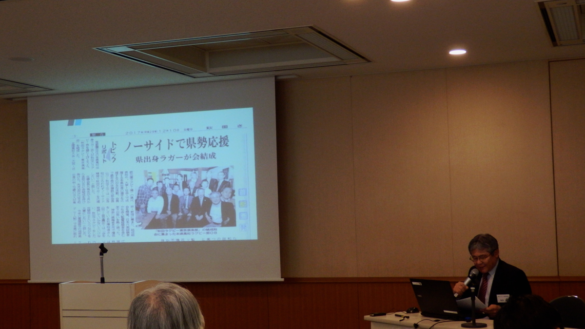 秋田ラグビー東京倶楽部 秋田魁新報の記事「「出身校にとらわれずノーサイド精神で秋田のラガーを応援したい」紹介