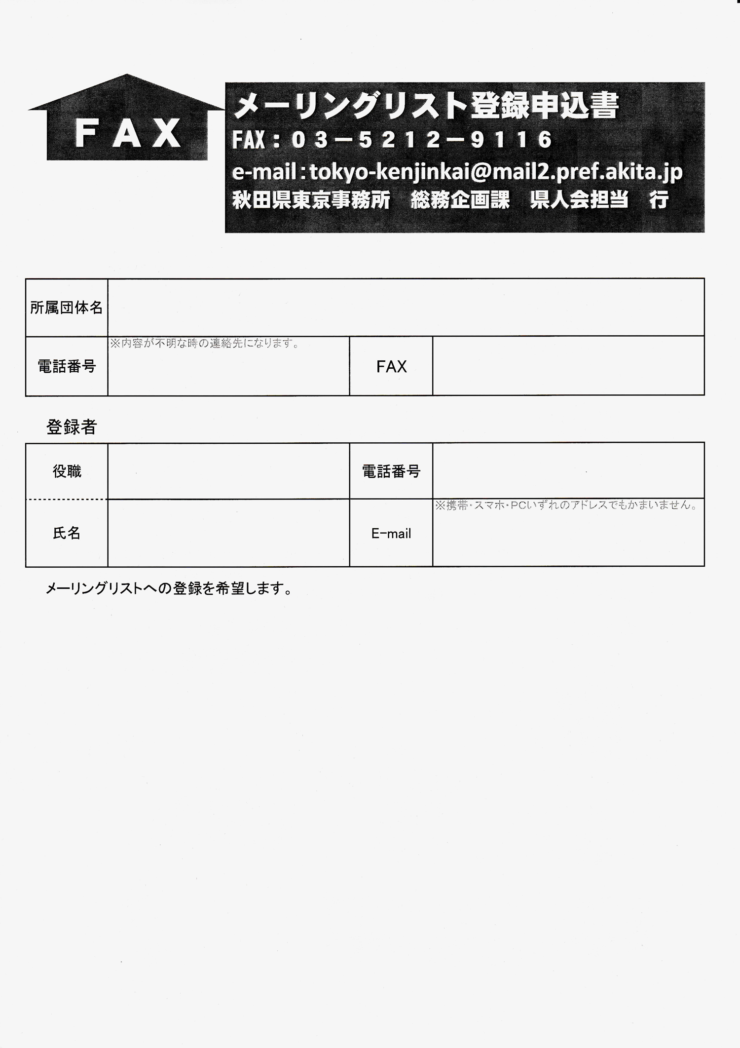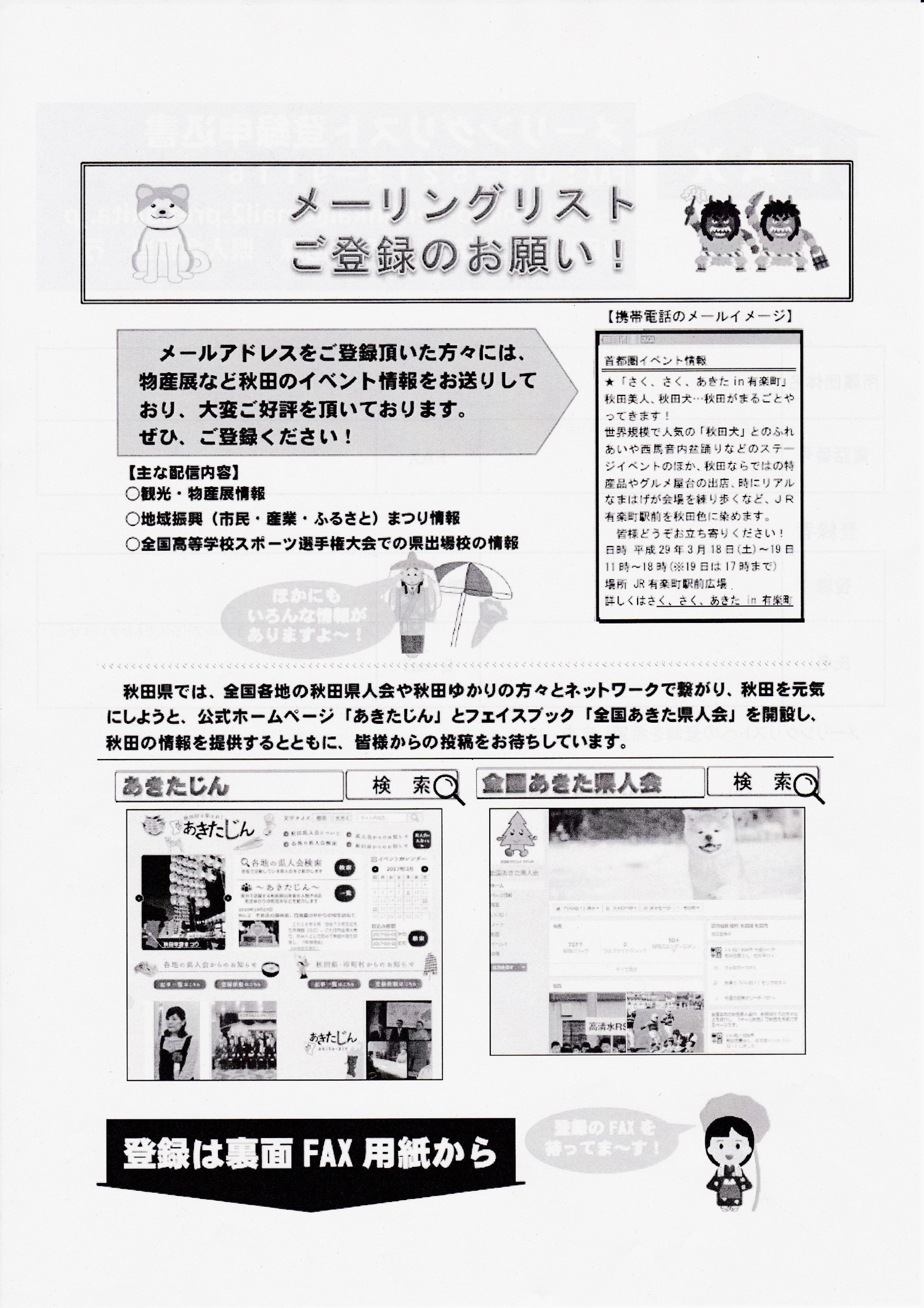 秋田県からの配布資料。メーリングリスト登録のお願い
