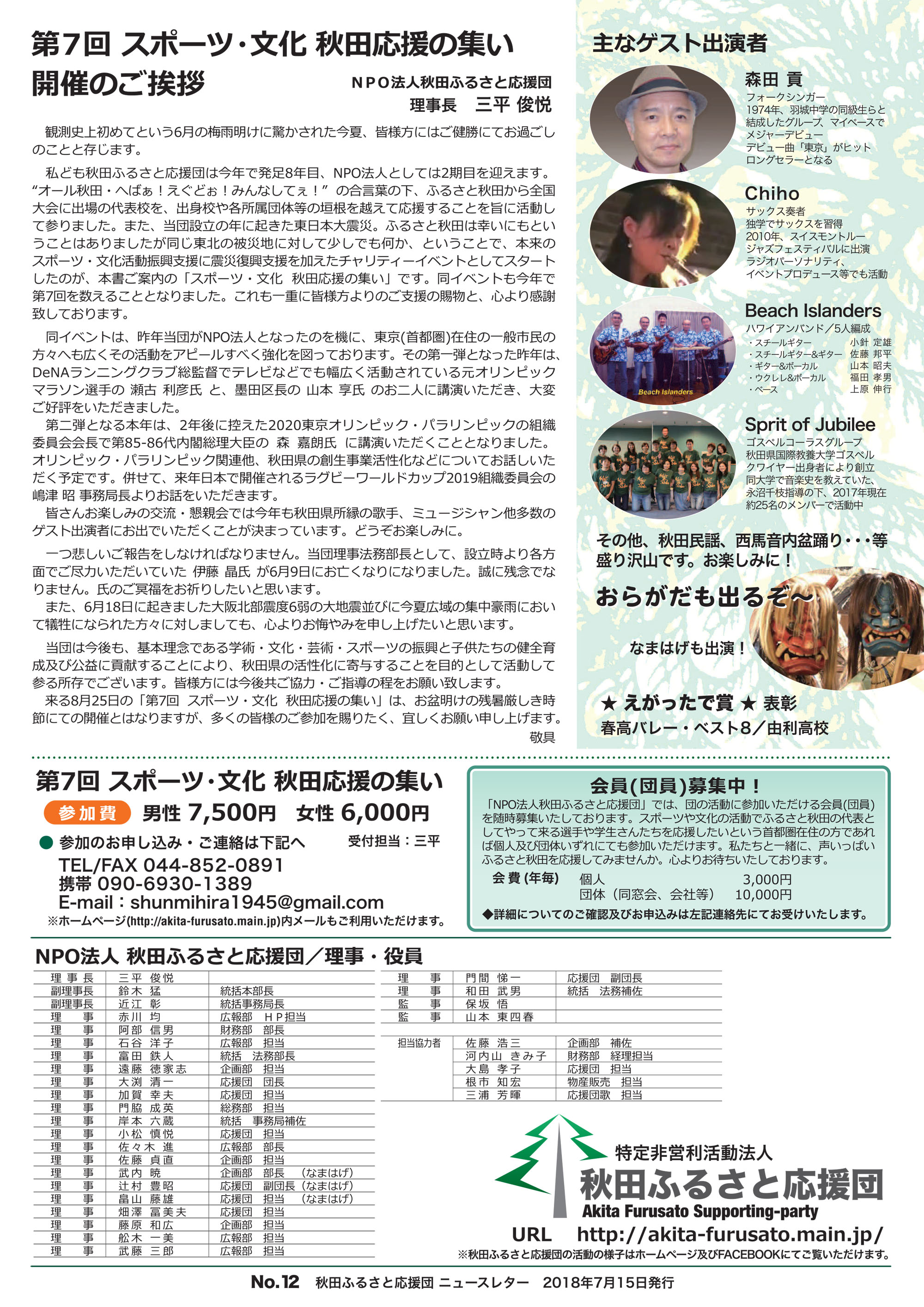 アーティストのブッキングを山嵐の武史が全面的に協力し実行委員自らで行っている。なお、武史はその功績が称えられ、2015年に渡部男鹿市長から感謝状を贈呈されました。