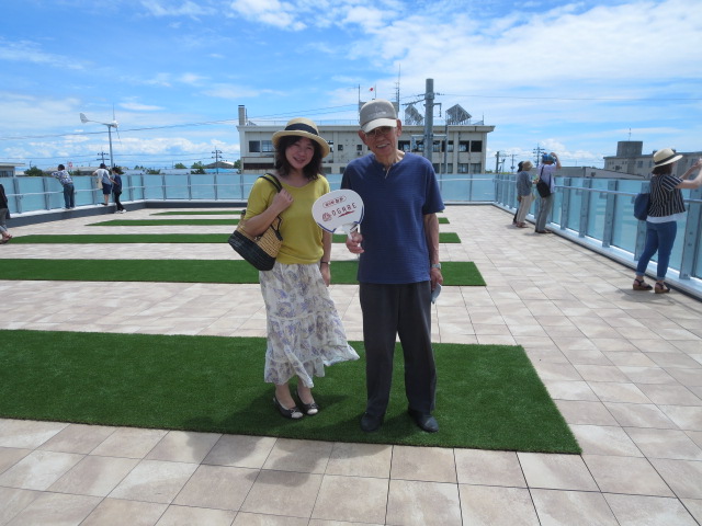 04 新男鹿駅 男鹿市秋工同窓会顧問佐々木洋悦(S29建築・初代同窓会長)娘さんと屋上にて