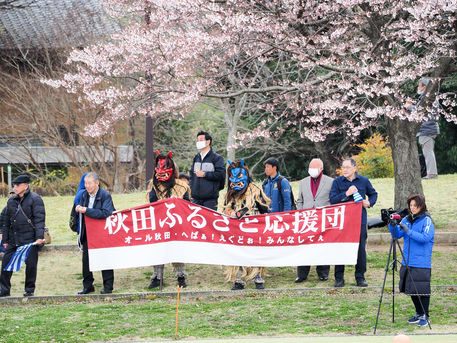 ふるさと応援団からなまはげ(赤・青)と10名が応援に駆けつけました。男鹿の在京関係者も多数応援に来ておりました。