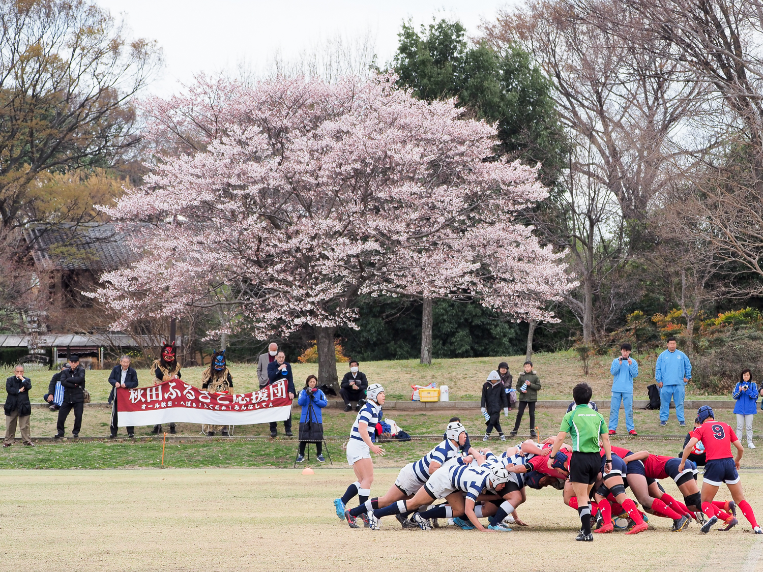 早稲田実業戦は後半終了10分前に不用意なパスからインターセプトされトライ・ゴールも決められて逆転負けしました。 残念でした。応援は、秋工OB・父兄・なまはげなど、多数応援して早稲田に負けてませんでした。