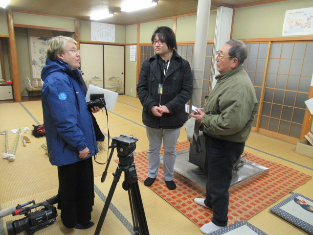 2月7日には約2時間かけて、ロイター通信の記者が佐藤龍男増川町内会会長に質問する形で映写され3月初めには全世界に増川地区(なまはげ実施市内92地区の1つ)の なまはげが紹介されました。男鹿市総務企画部企画政策課移住定住促進班 地域おこし協力隊 伊藤 晴樹と増川地区広報担当役員として私が立ち会いました。