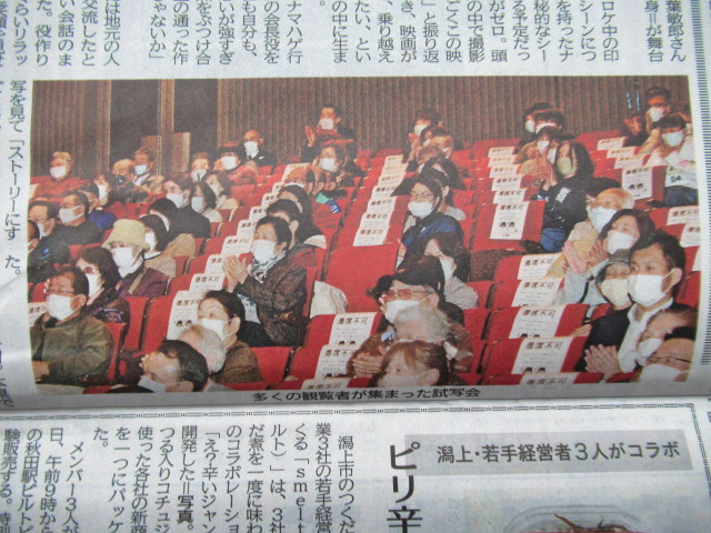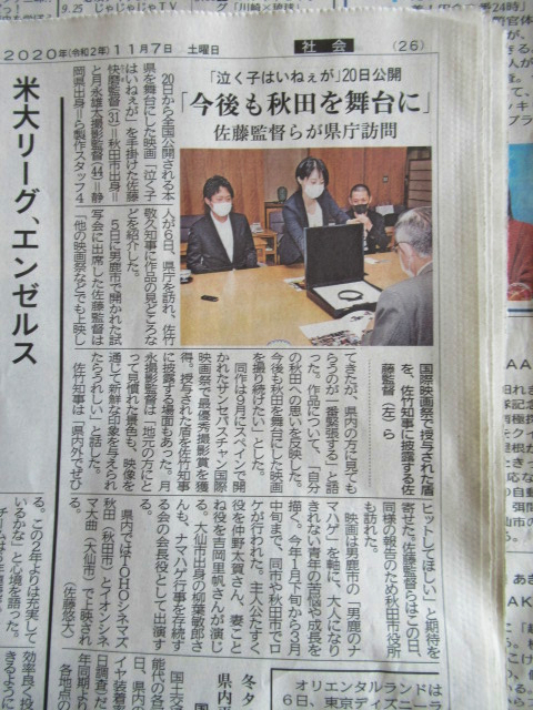 秋田所縁の皆様 『泣く子はいねぇが』(11月20日公開) 佐藤快磨(たくま)監督(31) 、糸井真吾佐藤監督を応援する会代長、伊藤智弘佐藤監督を応援する会副代長の応援よろしくお願いいたします。