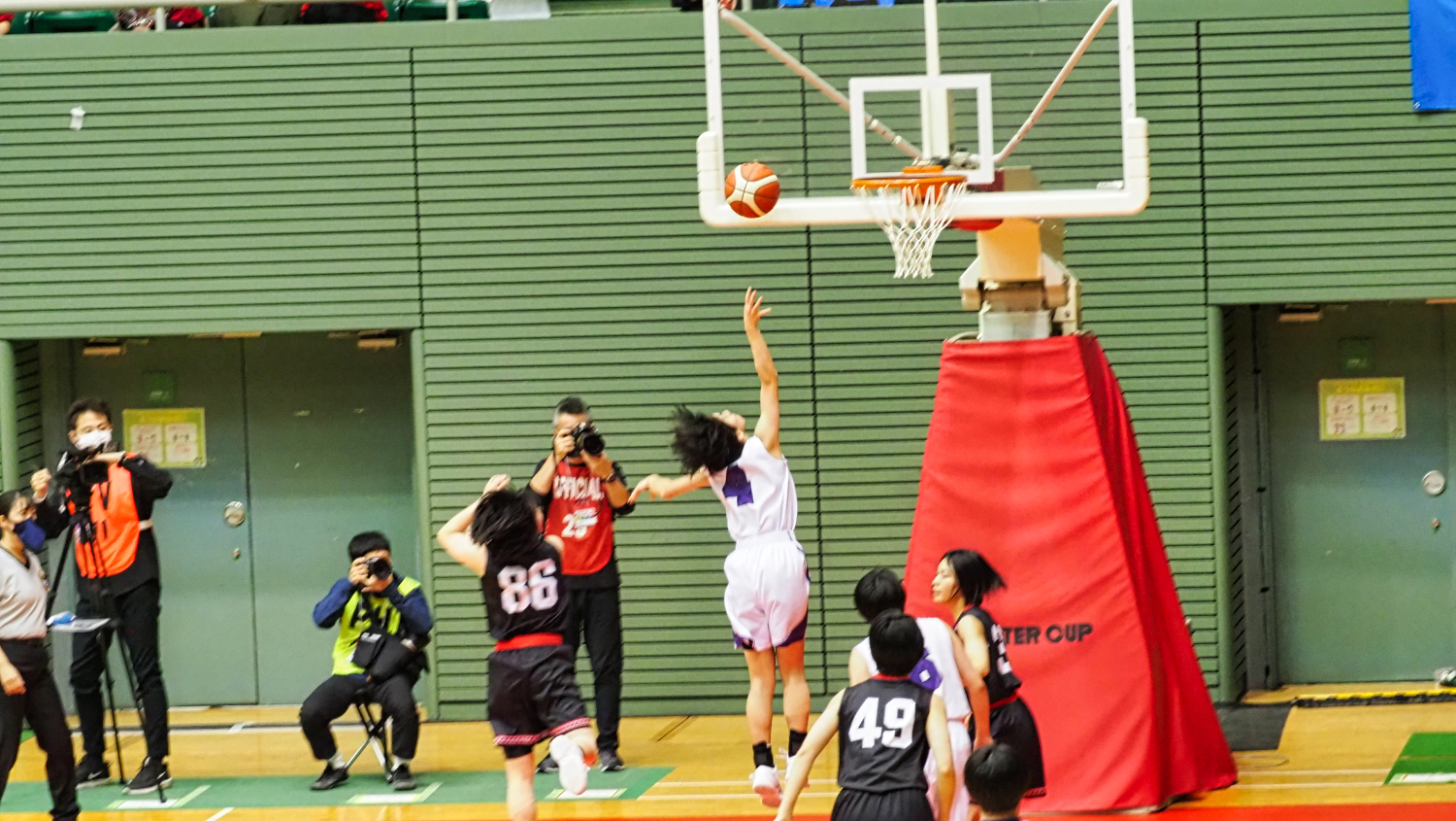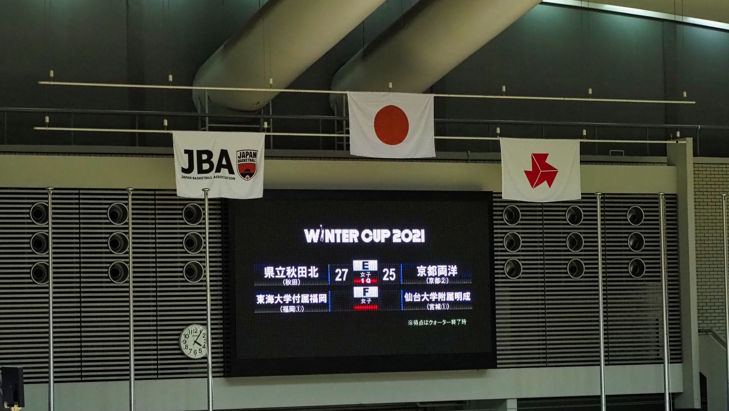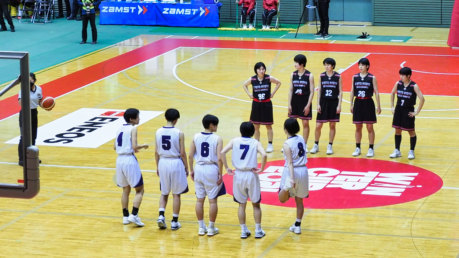 両校ともに初出場で特に長身の選手も居なくて、均衡したよい試合だったが、京都の3ポイントシュートがよく決まっていた。