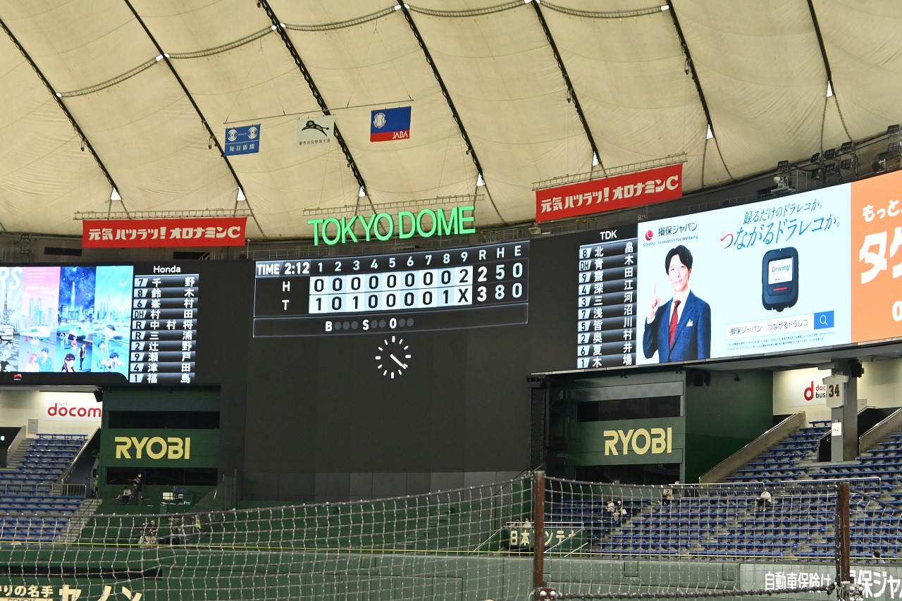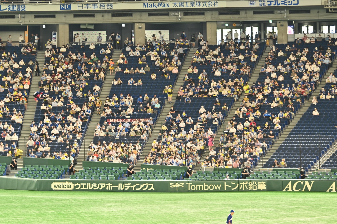 20日(水)午後1時東京ドームに集合、2時の試合開始前早めに入場しました。試合前、両チームの応援団が太鼓・ドラム・楽器などで応援合戦を繰り広げ熱い前哨戦でした。