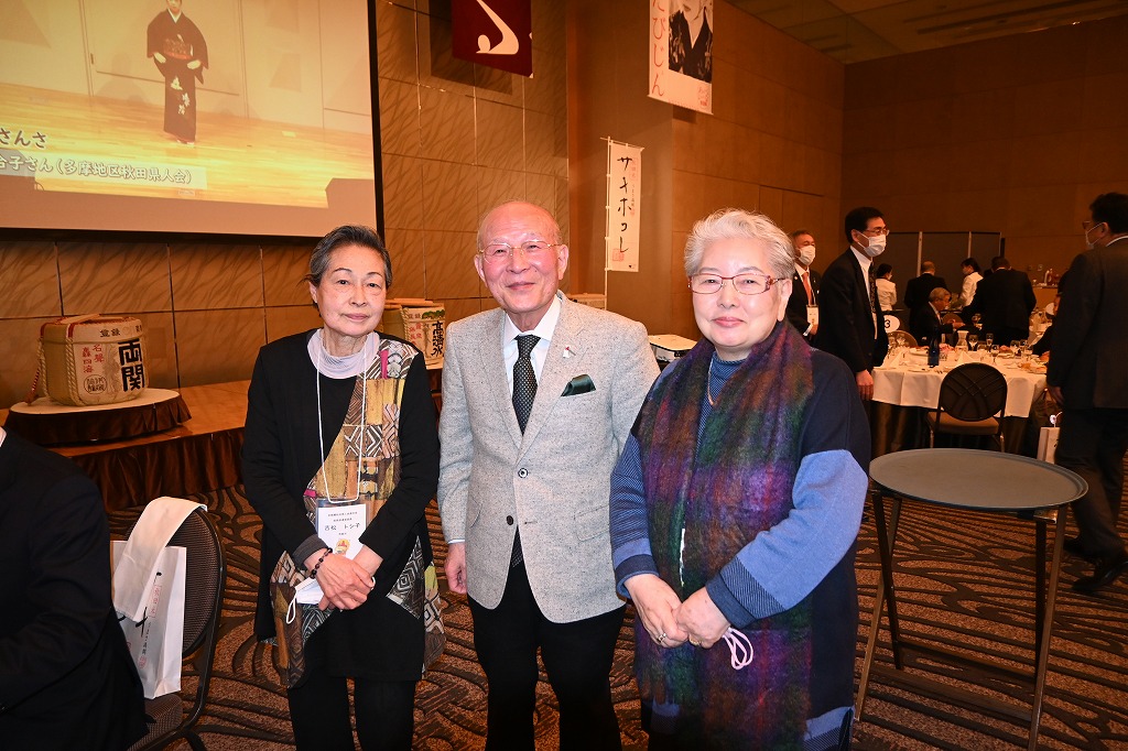 コロナ禍で3年振りの再会でした、感染防止の為か全員テーブルに着席し映像見ながら会食し秋田の地酒を楽しみました。37テーブル約270名が参加しました。