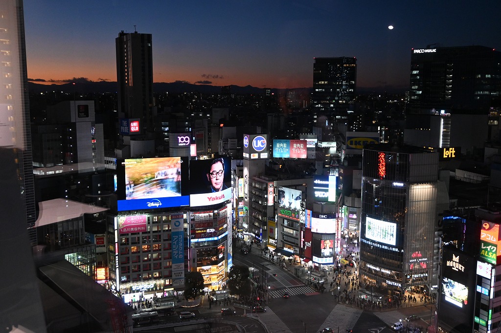 なお、早く渋谷に着いたので渋谷スクランブルスクエア14階の「ハチふる」に立ち寄ってきました。ぬいぐるみハチ公や秋田の商品が販売されてました。また、隣のコーナーでNHK大河ドラマの徳川家康公の映像や俳優の紹介が展示されて多くの外国人か見学してました。そこから渋谷スクランブル交差点・夜景の写真撮りました。