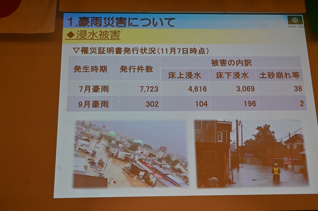 市政報告ではスライドを使って災害・人口・移住など・旭川地区の開発などを説明していただきました。