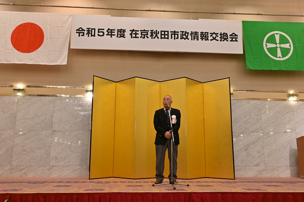 秋田市長 穂積 志氏より、4年ぶりに通常どおり開催にあたり、佐藤貞直委員長をはじめとするけやき会の皆様や日頃より、首都圏から秋田を支え応援の皆様に対し感謝を申し上げると挨拶がありました。