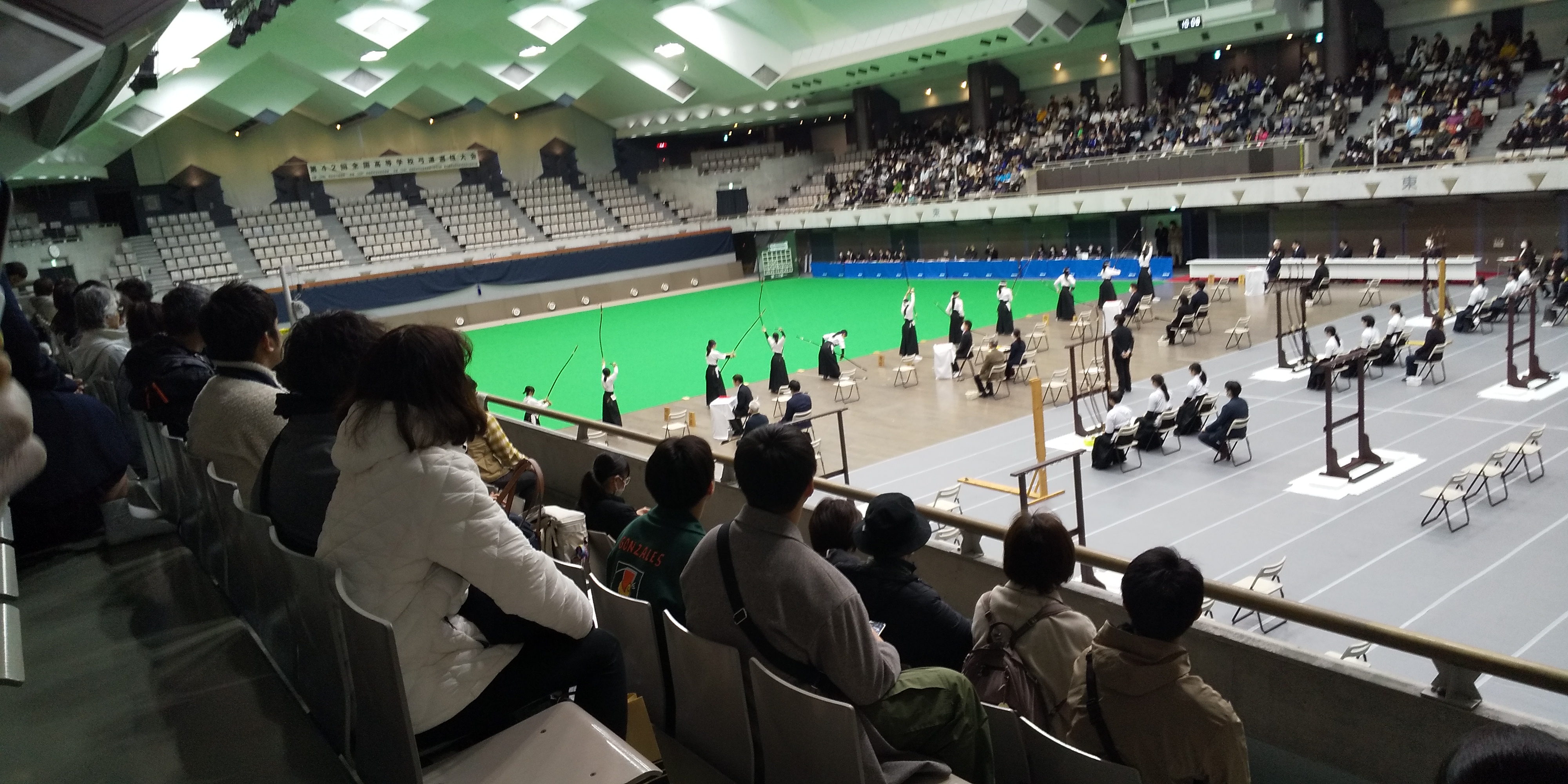 弓道大会の応援はスタンドに横断幕を掲げるのは許されておらず鳴り物の応援も無くて短いかけ声と拍手だけの他のスポーツにない初体験の応援風景でした。