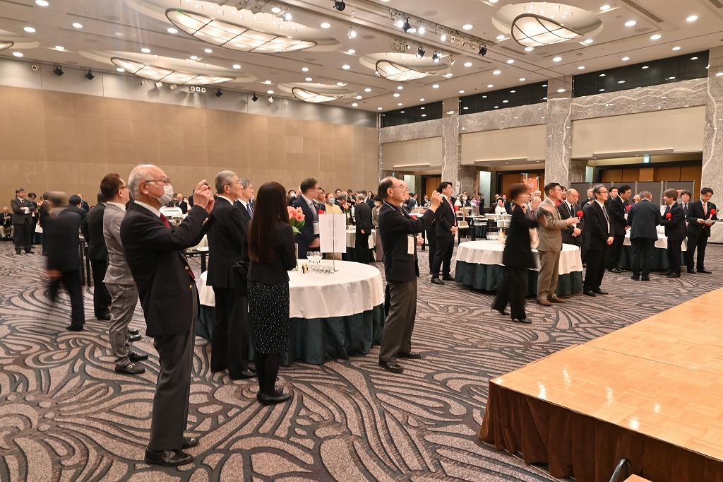 秋田県ゆかりの方々約250人ほど出席し立食パーティーでした。民謡の船方節を歌い県民歌を斉唱して開会しました。