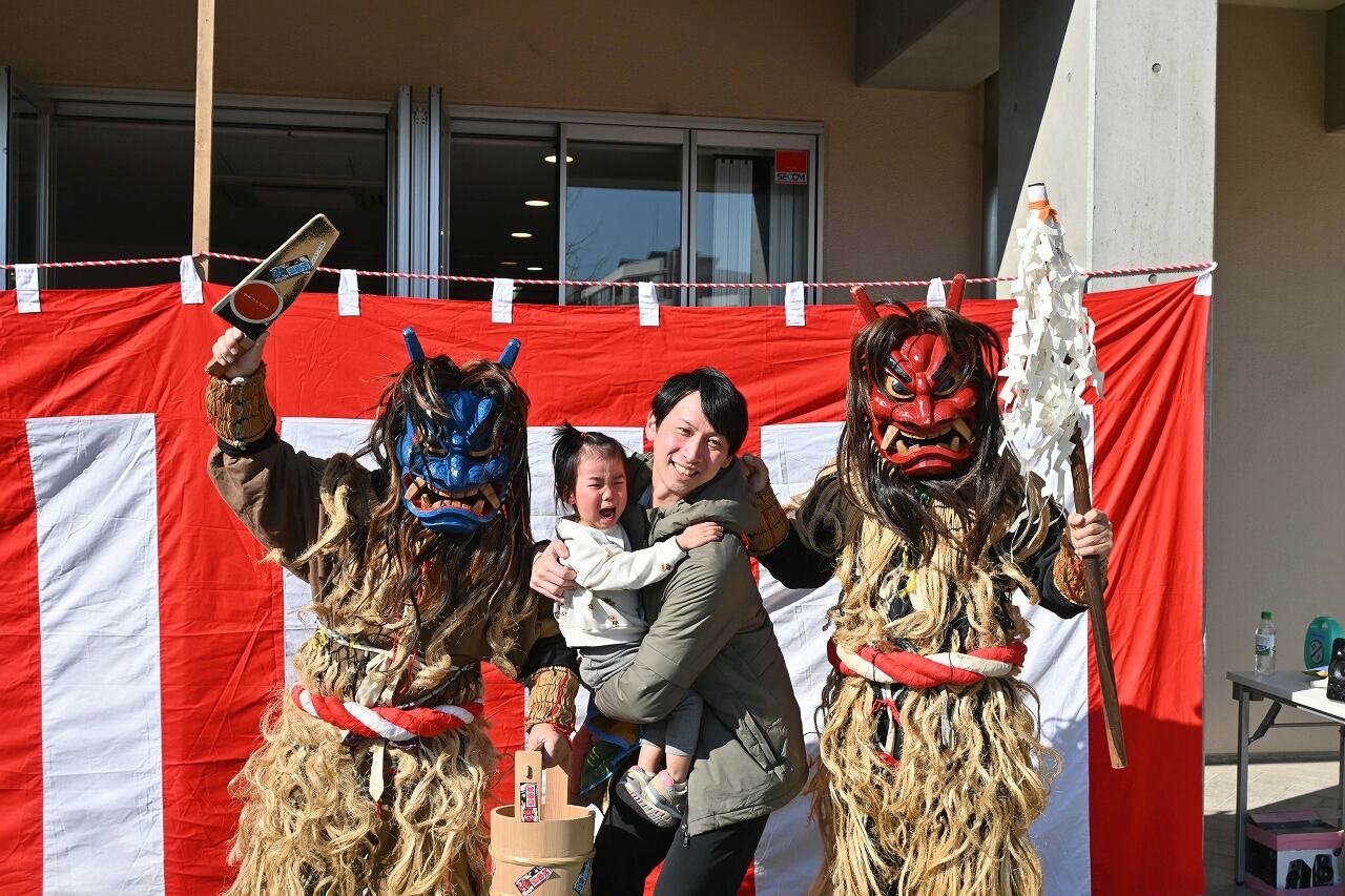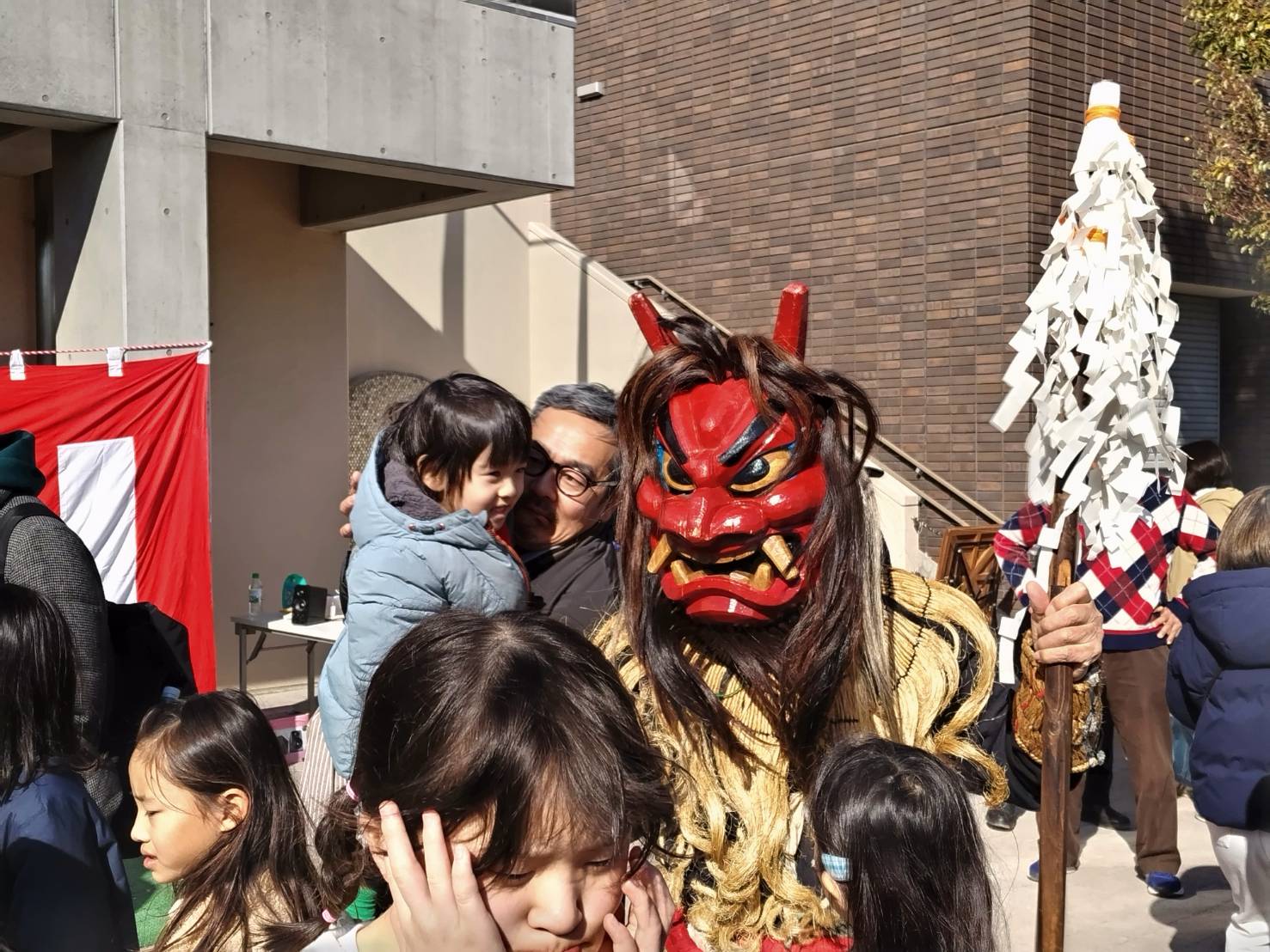令和6年2月3日、中野区東中野のおかのうえ公園広場に近隣住民や子供ら約300人が集い、“とちまる節分祭り“を開催しているところに”赤なまはげ、青なまはげ“が突然出現してみんなを驚かせた。